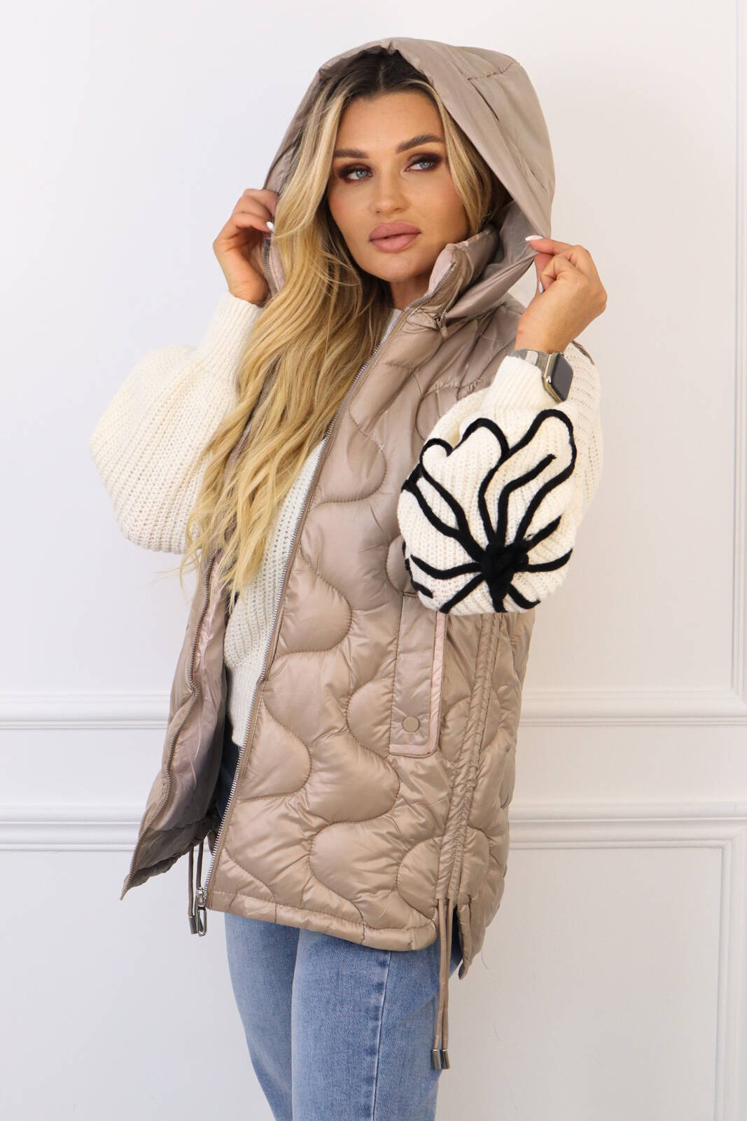 BEŻOWA PIKOWANA KAMIZELKA ZE ŚCIĄGACZAMI PO BOKACH
