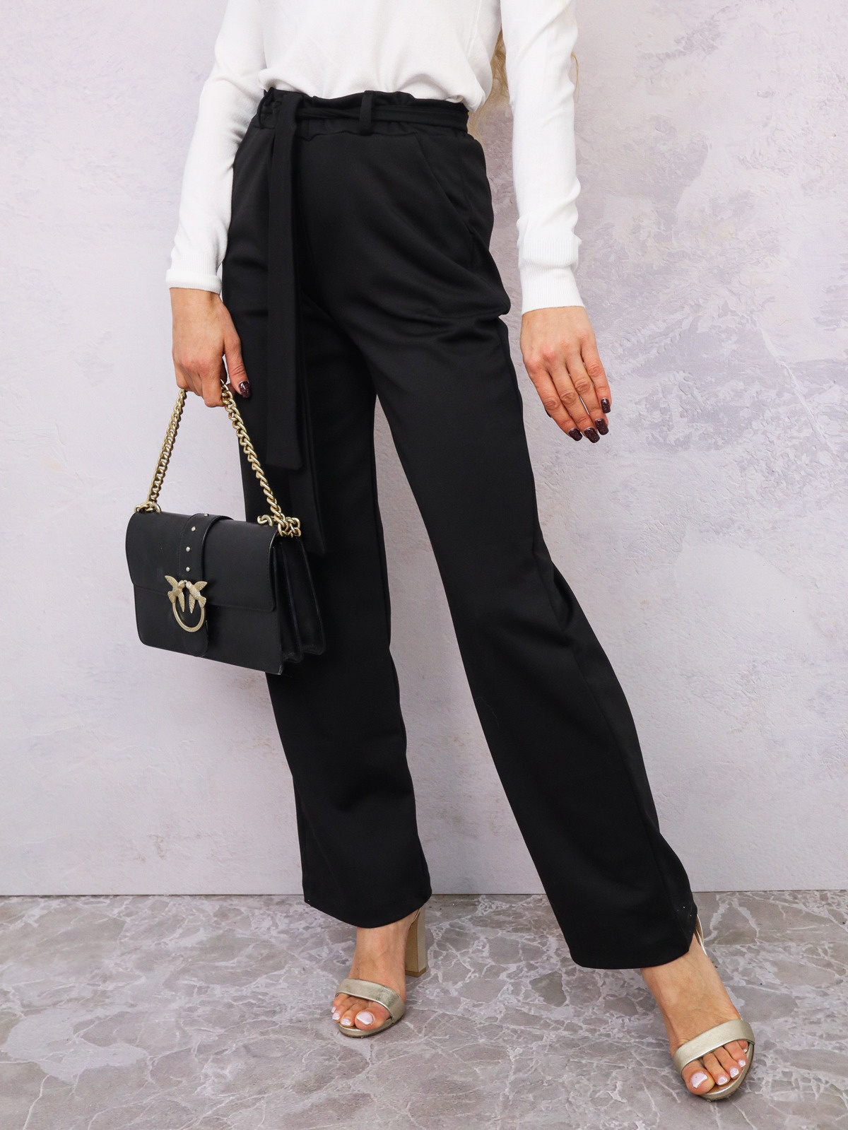 ELEGANCKIE SPODNIE Z WIĄZANIEM W PASIE- CZARNE