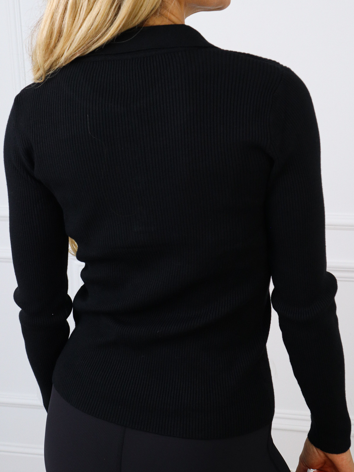 DZIANINOWA BLUZKA SWETEREK Z KOŁNIERZYKIEM I GUZIKAMI- CZARNA