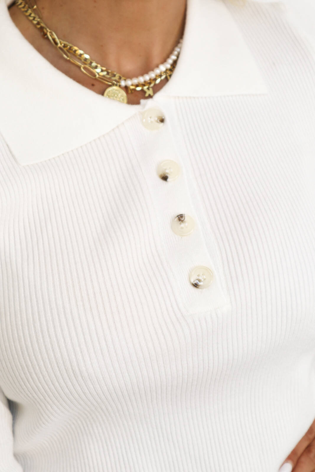 DZIANINOWA BLUZKA SWETEREK Z KOŁNIERZYKIEM I GUZIKAMI- BIAŁA