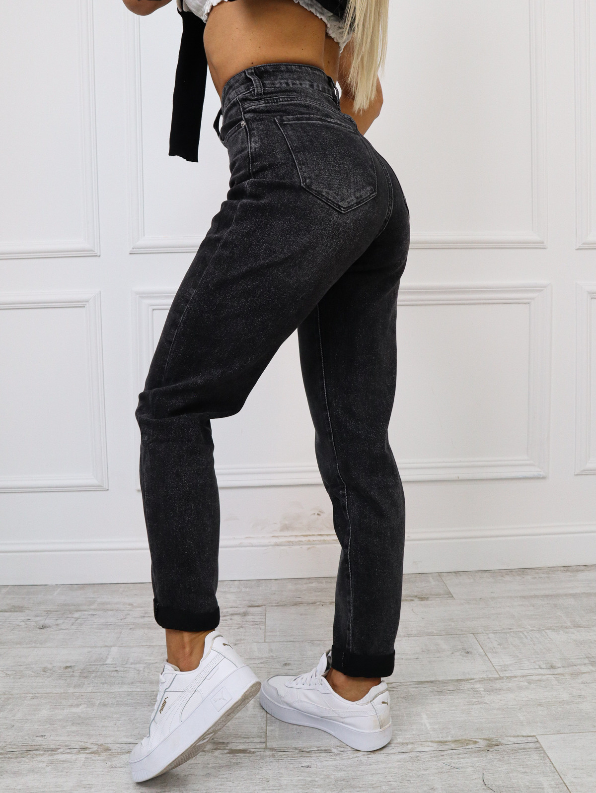 SPODNIE MOM STRETCH CIEMNO SZARE- WYSOKI STAN