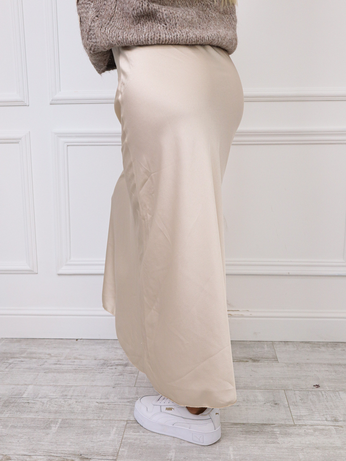 SATYNOWA SPÓDNICA Z GUMKĄ W PASIE -BEŻOWA