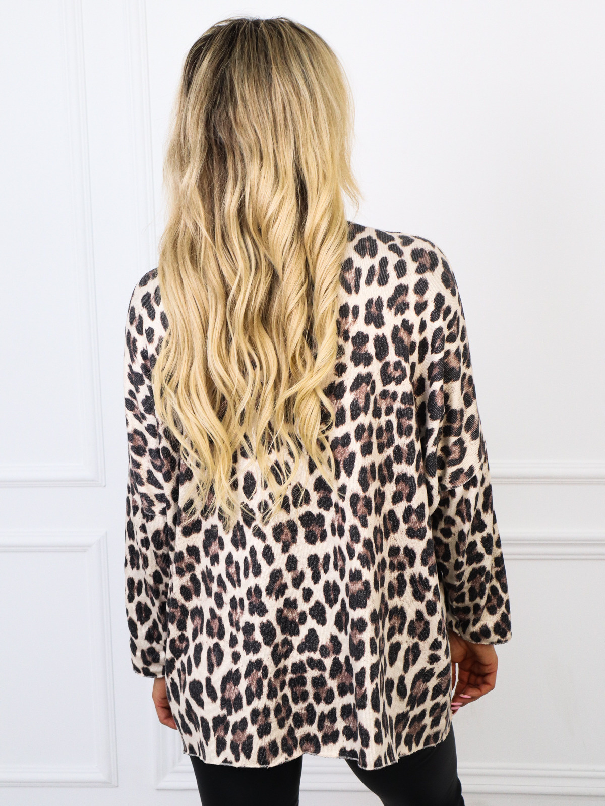BLUZKA NIETOPERZ Z DEKOLTEM W SEREK I WZOREM PANTERKA