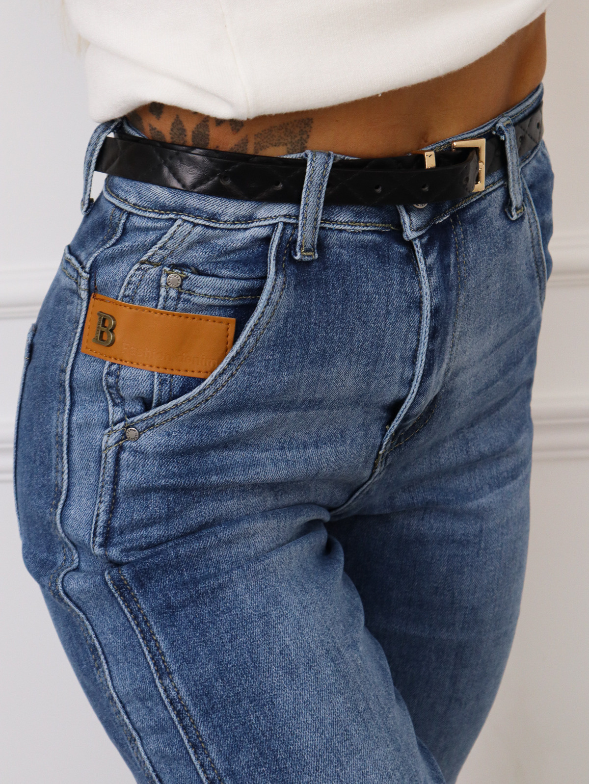 SPODNIE JEANSOWE Z OZDOBNYMI PRZESZYCIAMI+ PASEK