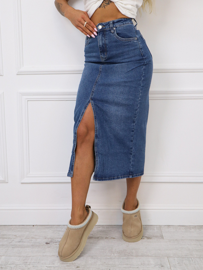 JEANSOWA SPÓDNICA MIDI Z ROZCIĘCIEM