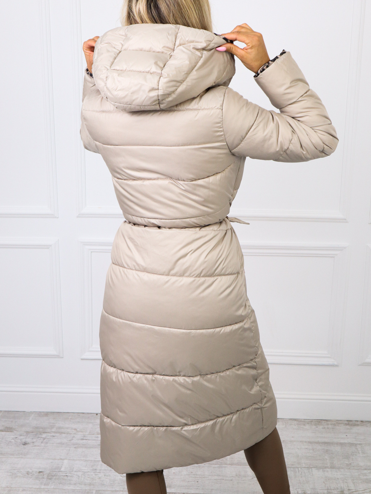 DWUSTRONNY PŁASZCZ PIKOWANY Z WIĄZANIEM W PASIE- BEŻOWY