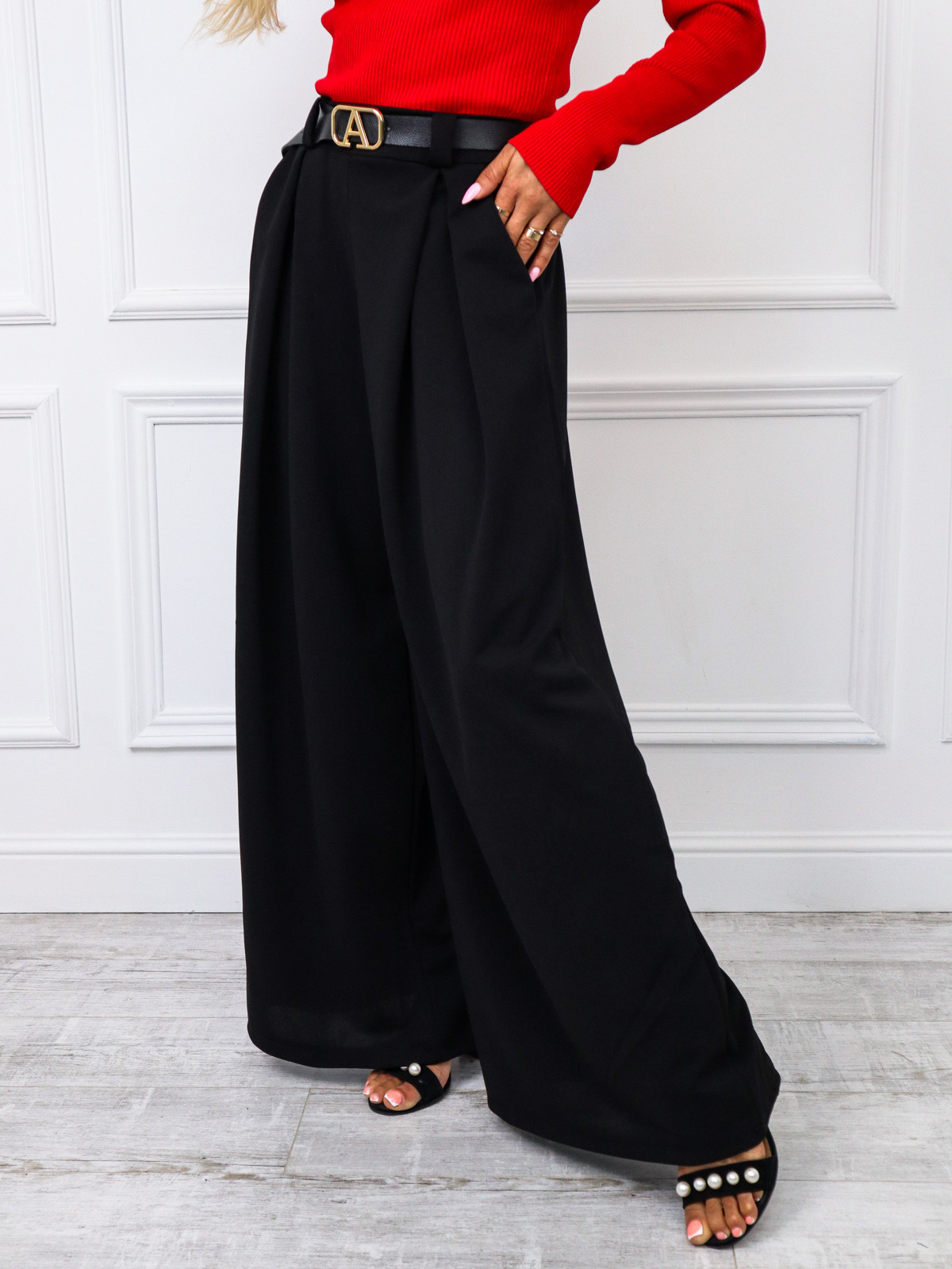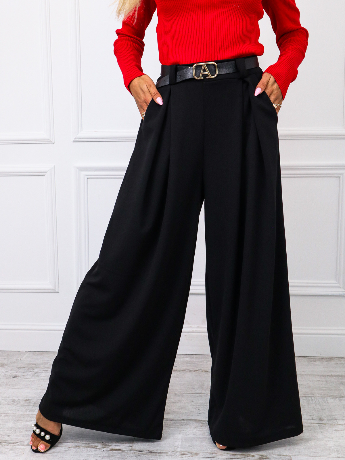 SPODNIE MATERIAŁOWE Z SZEROKIMI NOGAWKAMI+ PASEK- CZARNE