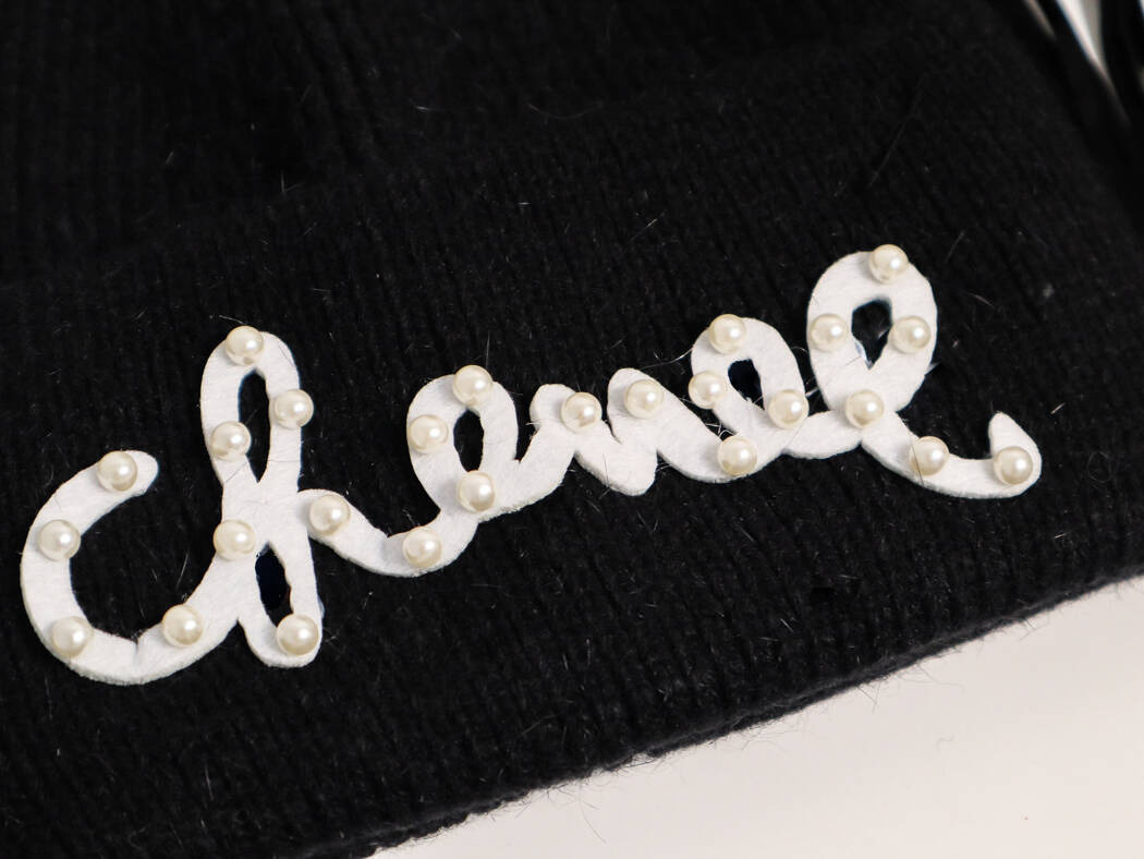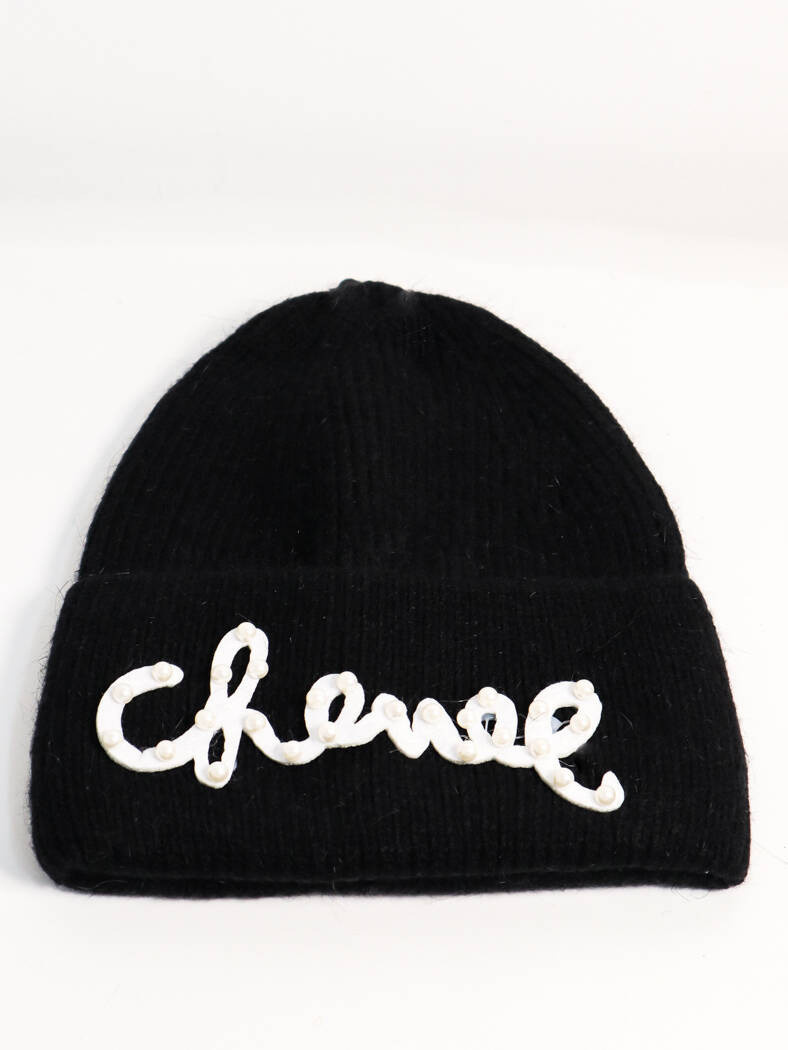 CZAPKA Z DOMIESZKĄ WEŁNY  ORAZ NAPISEM Z KORALIKAMI-CZARNA