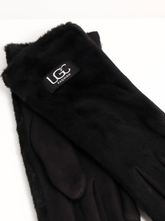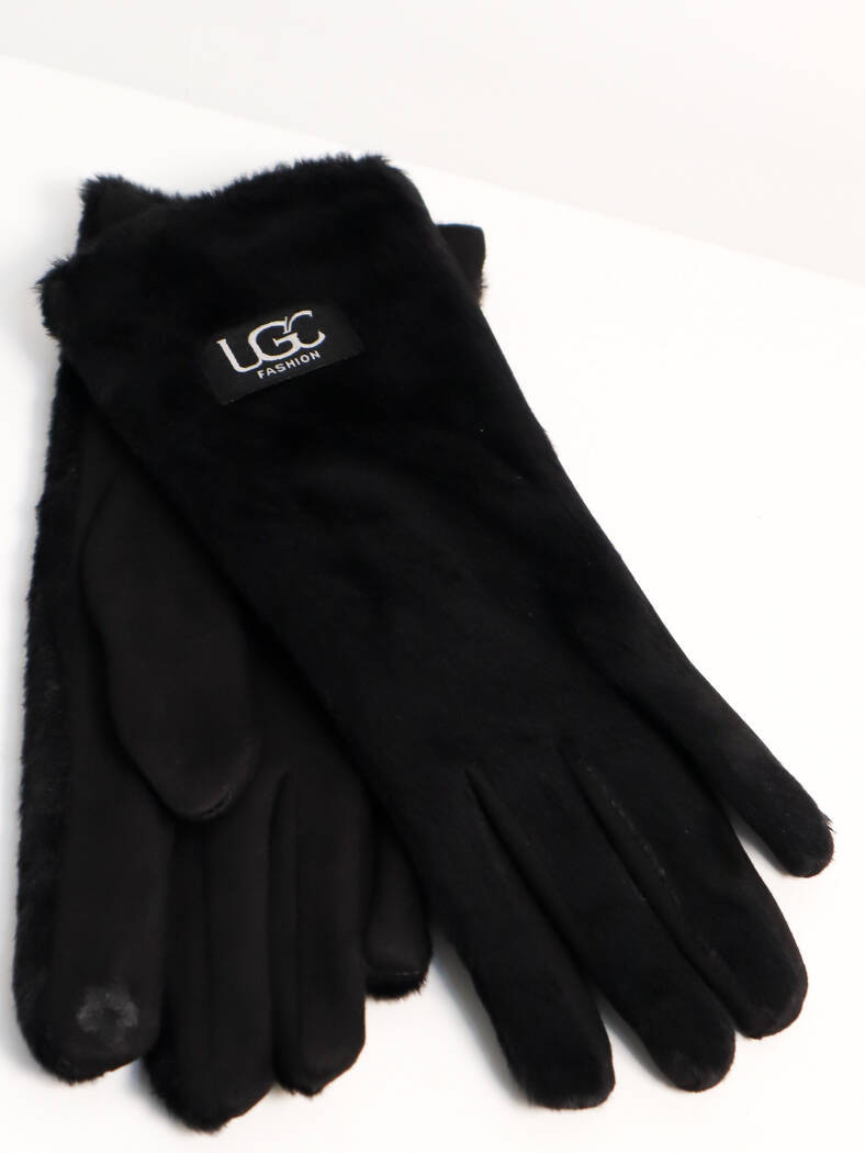 RĘKAWICZKI ZAMSZOWE Z FUTERKIEM PIĘCIOPALCZASTE Z LOGIEM LGC- CZARNE