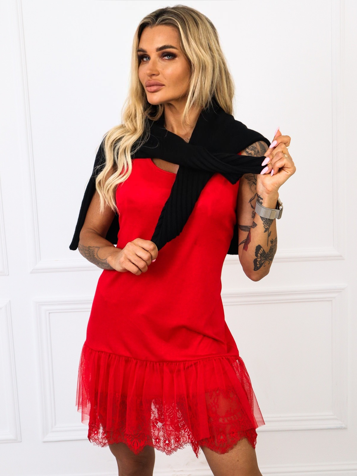 CZERWONA SUKIENKA HALKA Z KORONKĄ