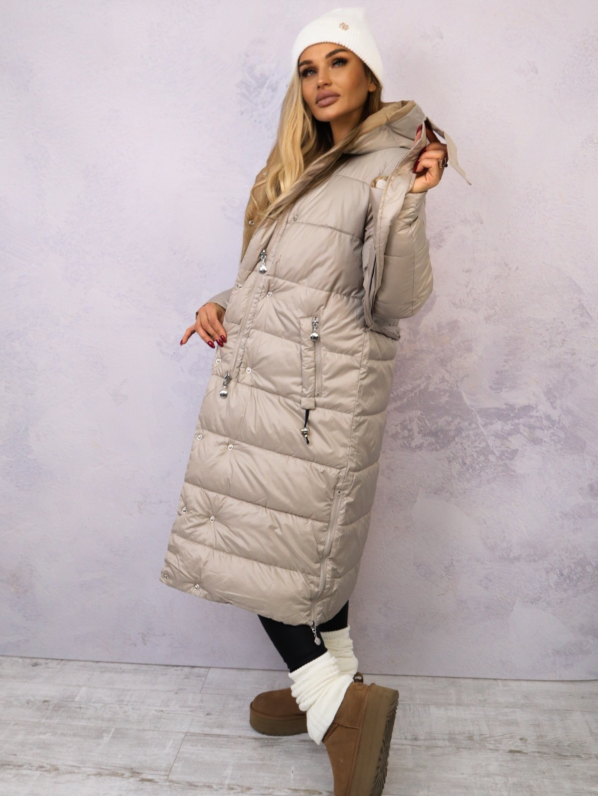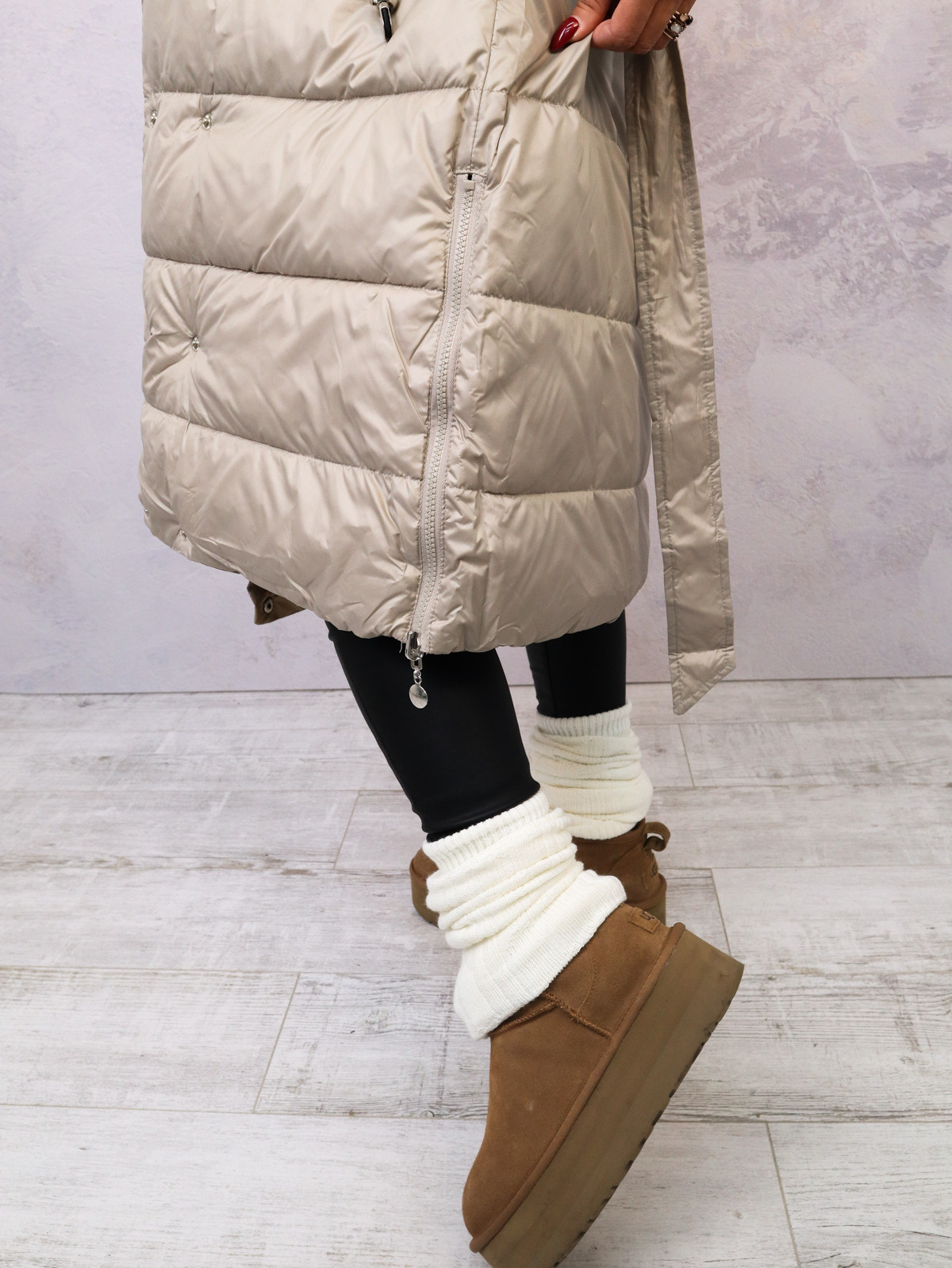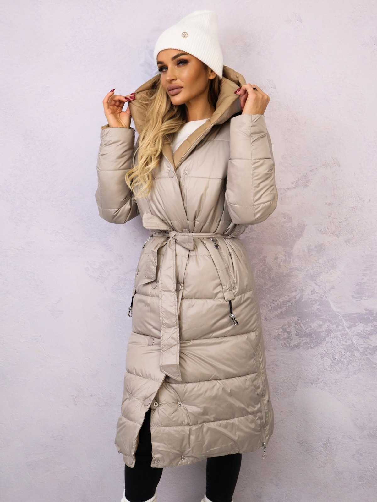 PŁASZCZ DWUSTRONNY Z WIĄZANIEM W PASIE- BEŻOWO-BRĄZOWY