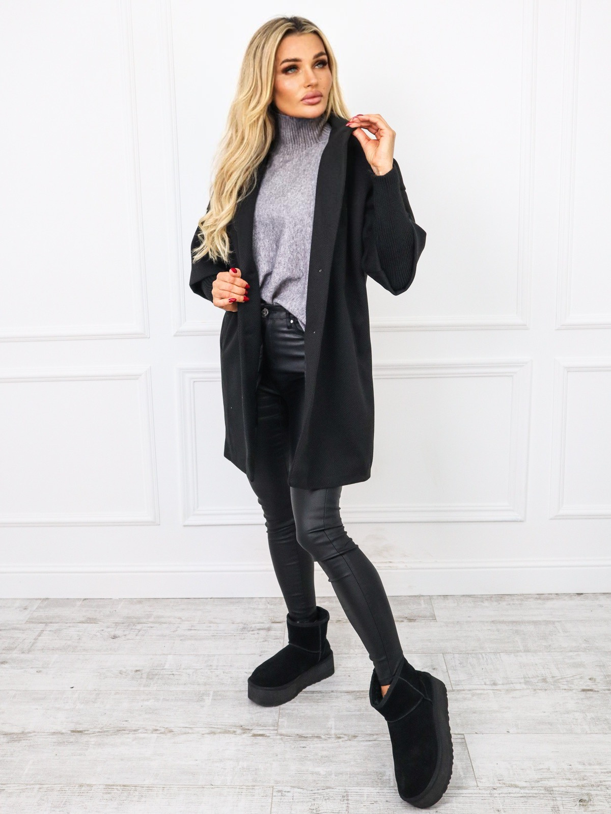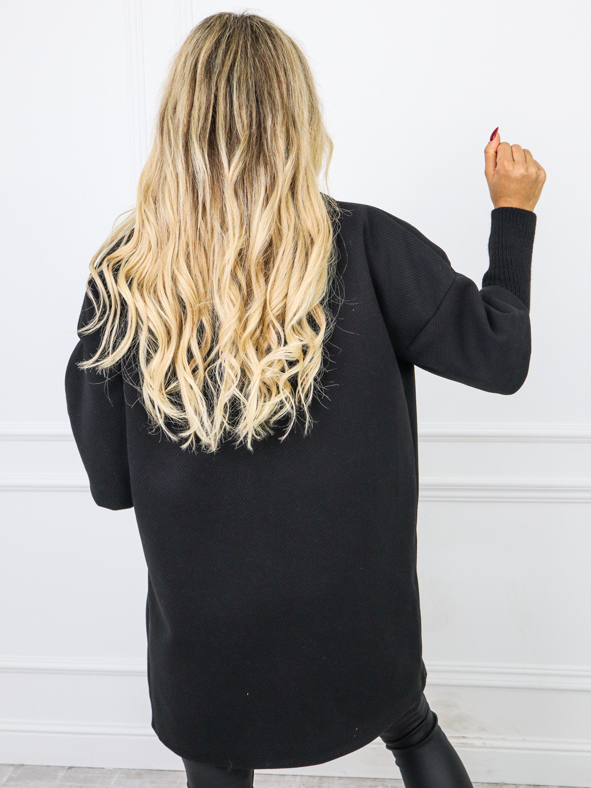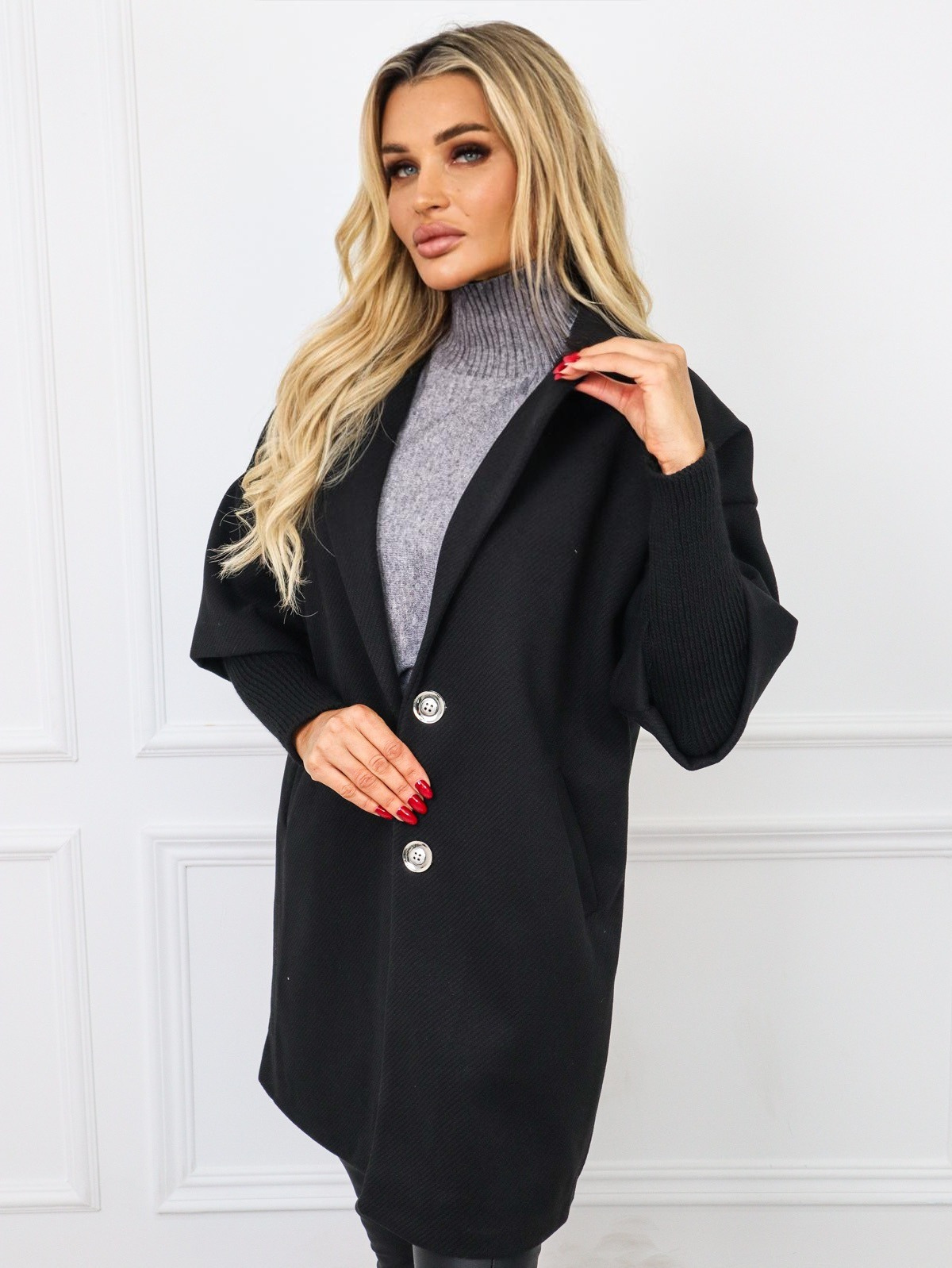 PŁASZCZ OVERSIZE Z DZIANINOWYMI RĘKAWAMI- CZARNY