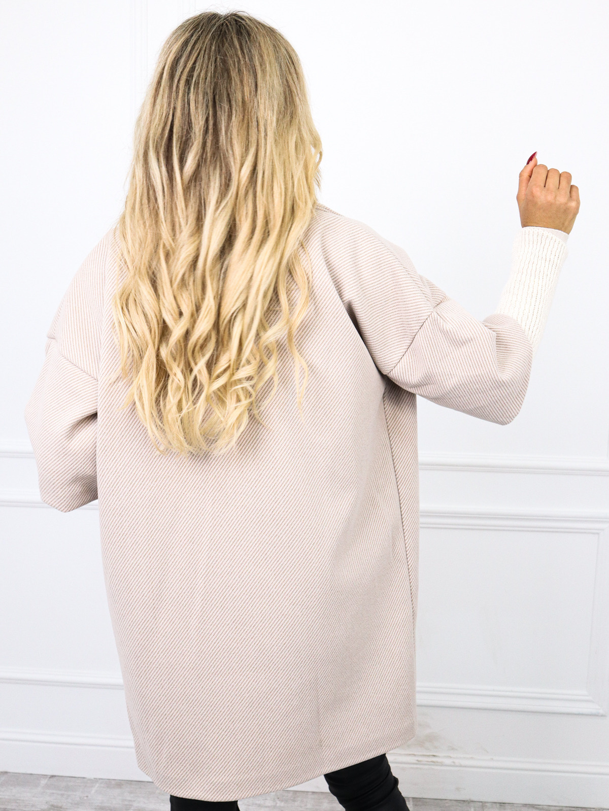 PŁASZCZ OVERSIZE Z DZIANINOWYMI RĘKAWAMI- BEŻOWY