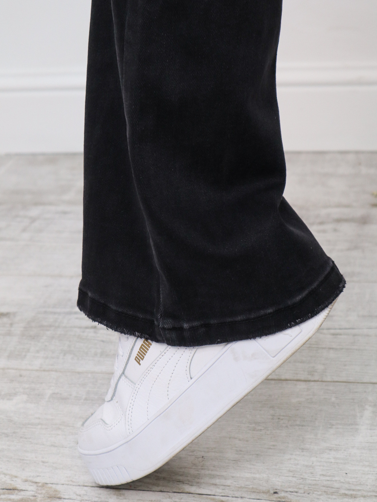 SPODNIE JEANSOWE FLARE DZWONY- CZARNE