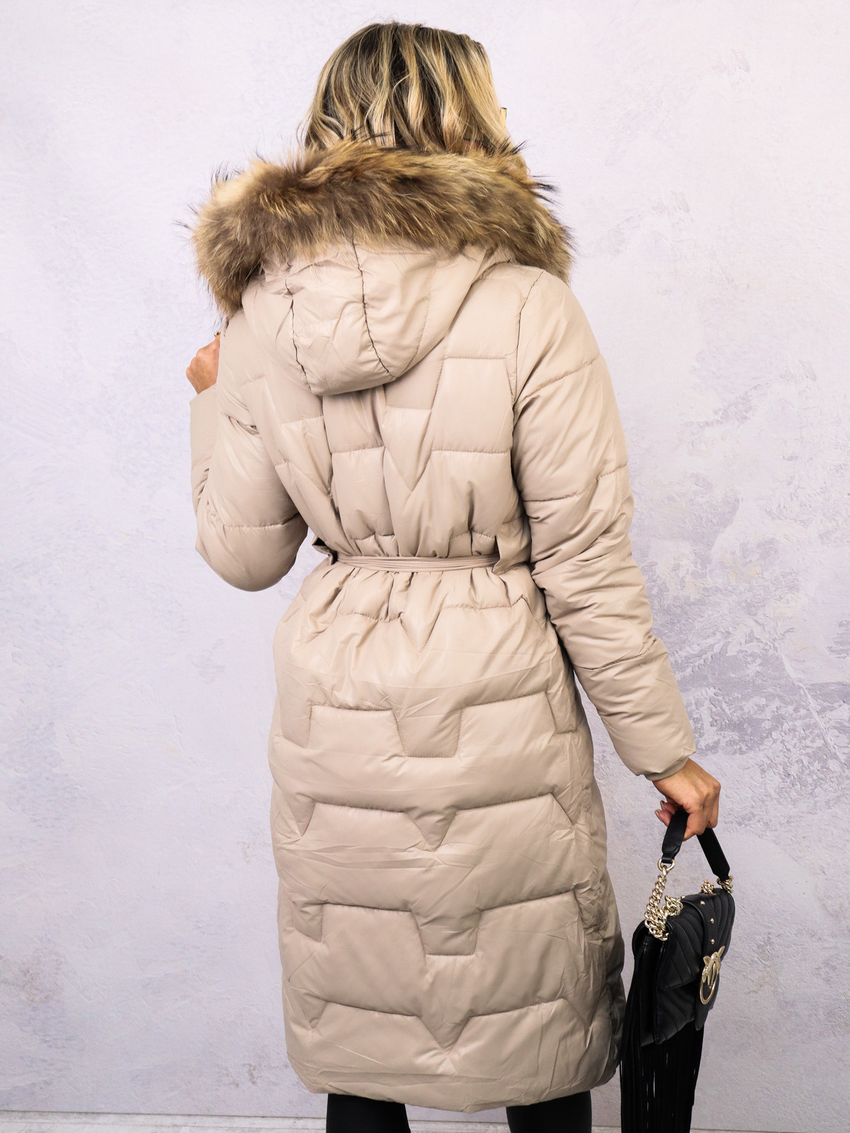 DŁUGA PIKOWANA KURTKA Z FUTERKIEM- BEŻOWA