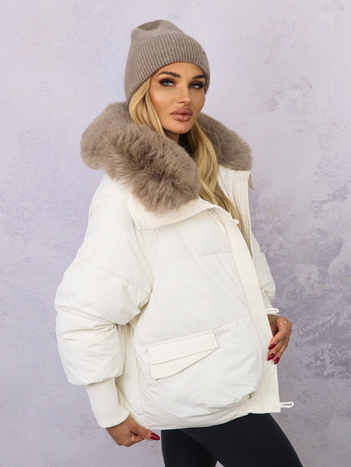 KURTKA OVERSIZE Z FUTERKIEM- BIAŁA