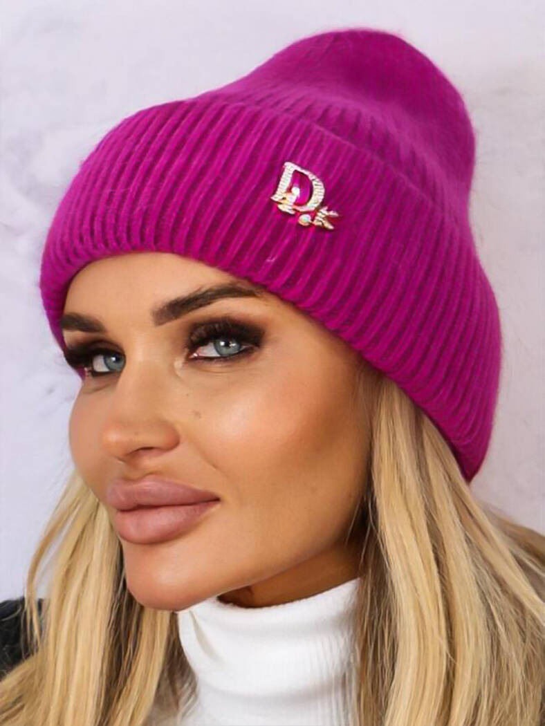 CZAPKA ZIMOWA Z BROSZKĄ W CYRKONIE DiK- CIEMNY RÓŻ