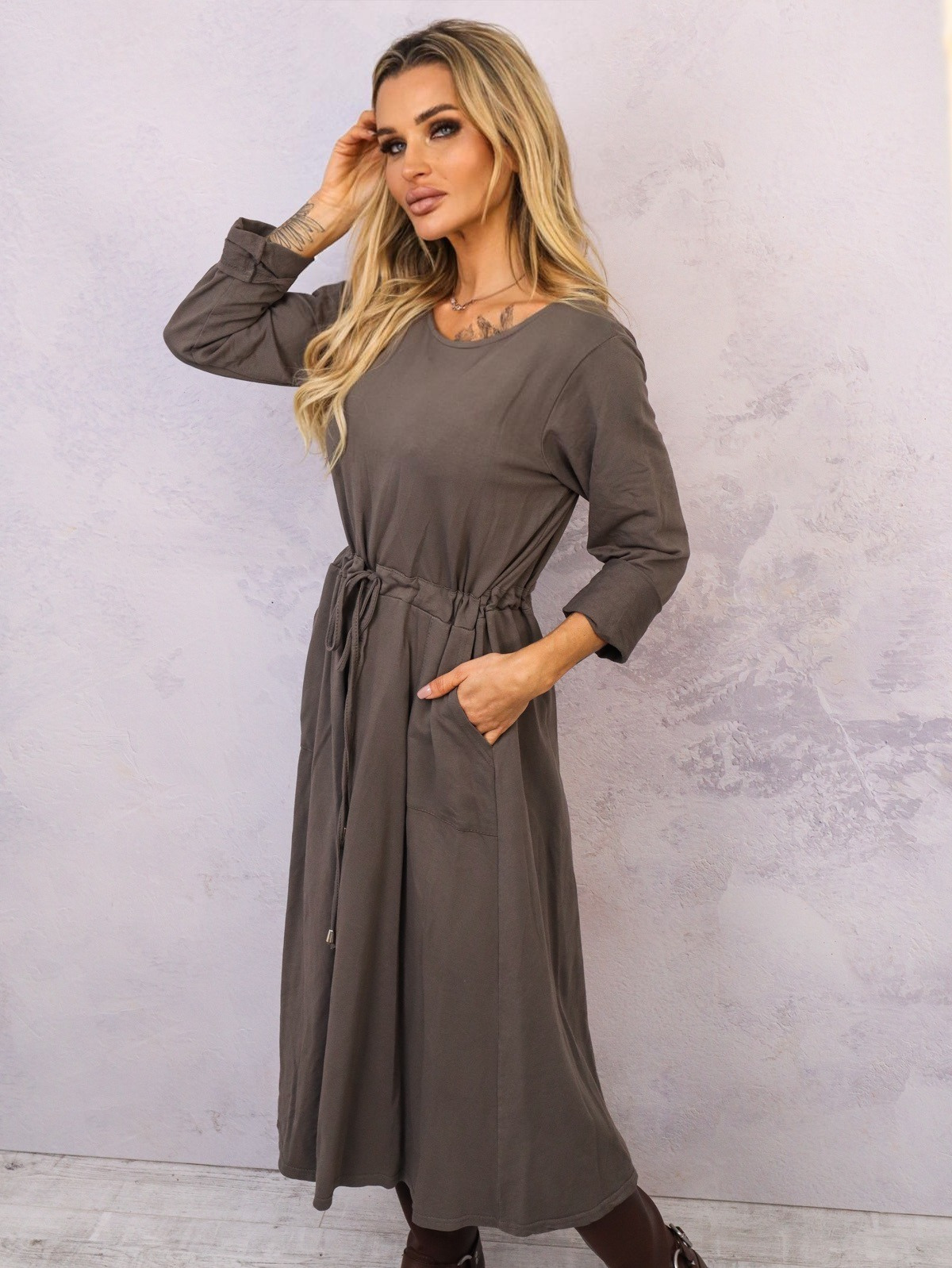 Sukienka midi z wiązaniem w pasie. Uniwersalny rozmiar.