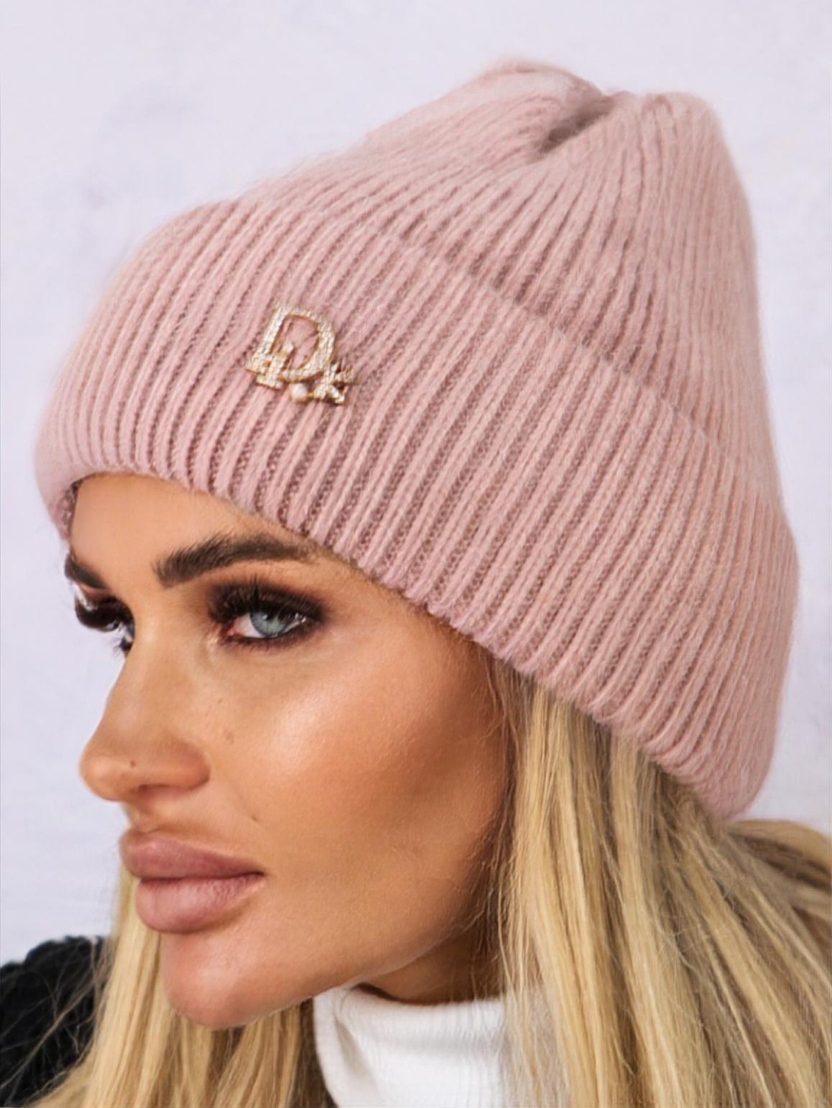 CZAPKA ZIMOWA Z BROSZKĄ W CYRKONIE DiK- RÓŻOWY