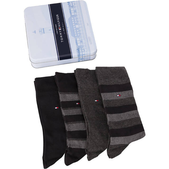 Zestaw czterech par wysokogatunkowych skarpetek marki Tommy Hilfiger zapakowanych w gustowne pudełko to znakomity pomysł na prezent. Skarpetki wykonane z najwyższej jakości materiału - wytrzymałego i przyjemnego w dotyku, zestaw w modnej kolorystyce.
