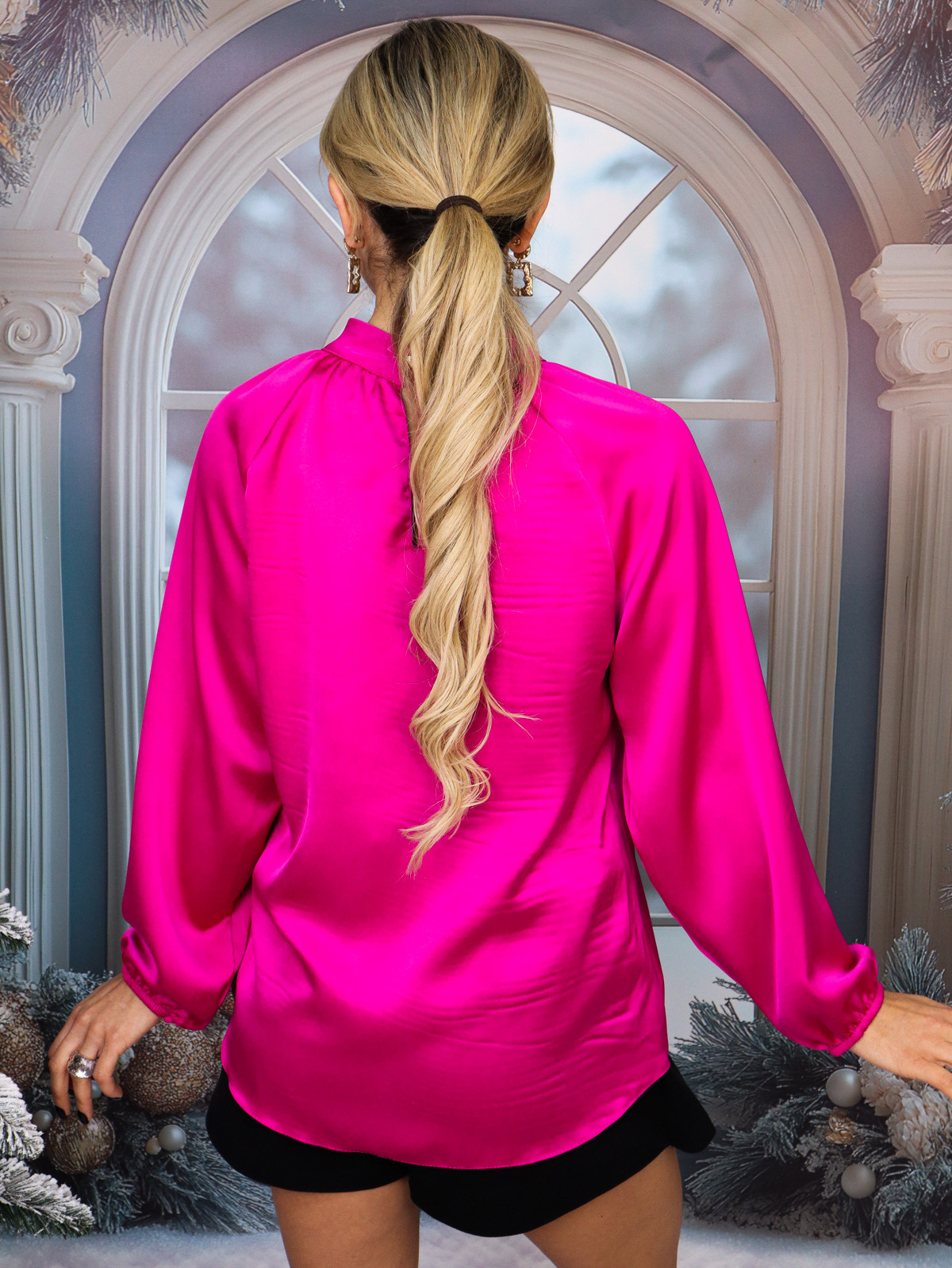 SATYNOWA BLUZKA ZE STÓJKĄ I RĘKAWAMI Z GUMKĄ- RÓŻOWA