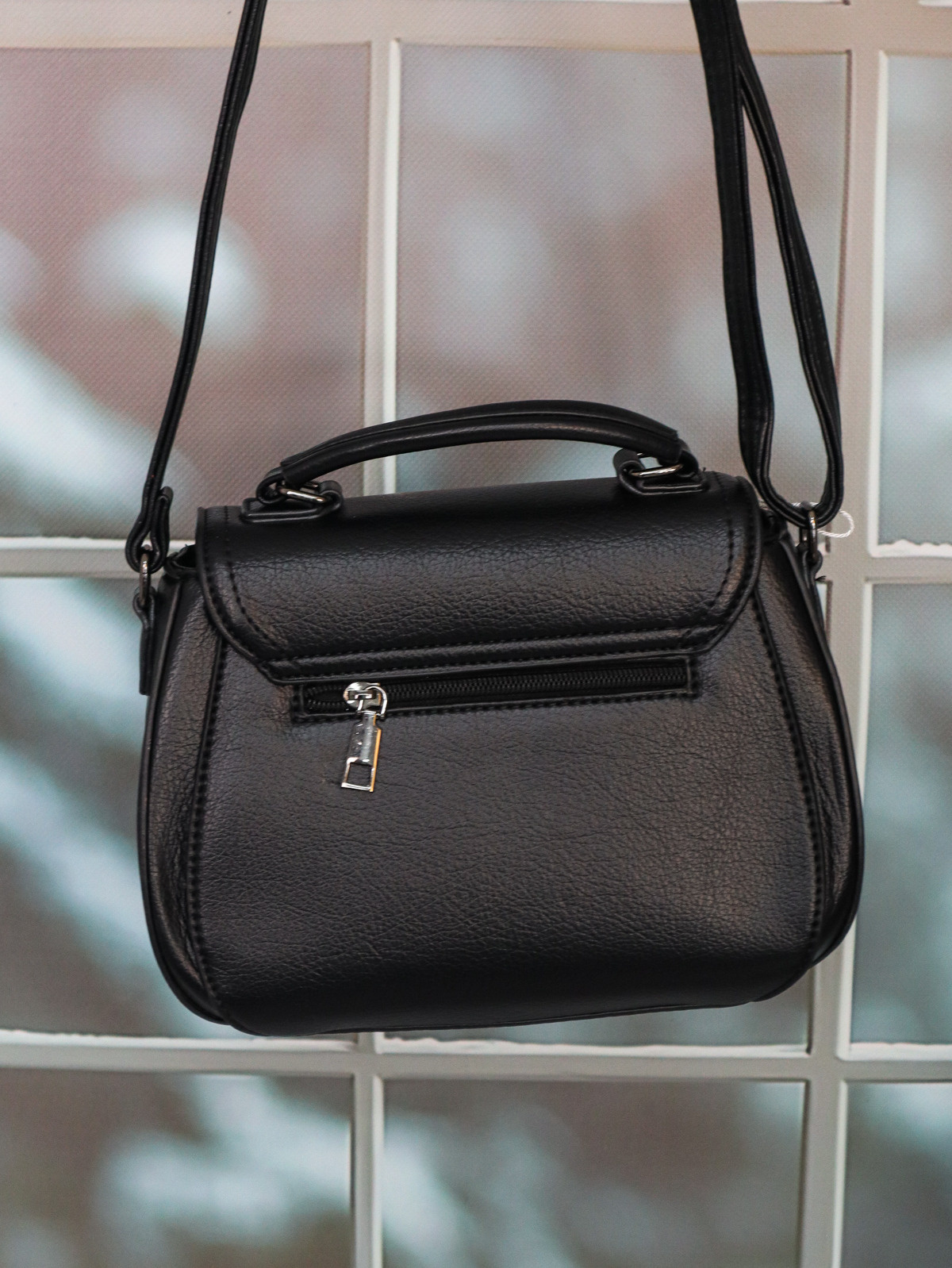 Torebka kuferek z eko skóry z ozdobnymi zamkami po boku. Posiada jedną większą kieszeń oraz jedną mała zapinaną na zamek. Torebka zapinana na napa, posiada pasek na ramię.