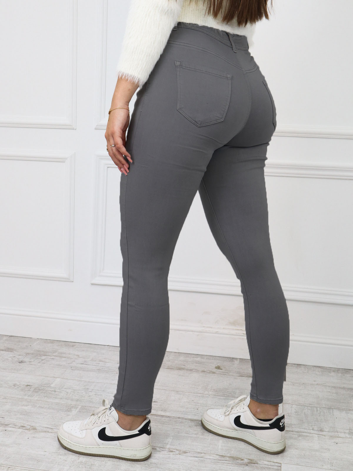 (DUŻE ROZMIARY M-XXXXL) CIEMNO SZARY spodnie z wysokim stanem