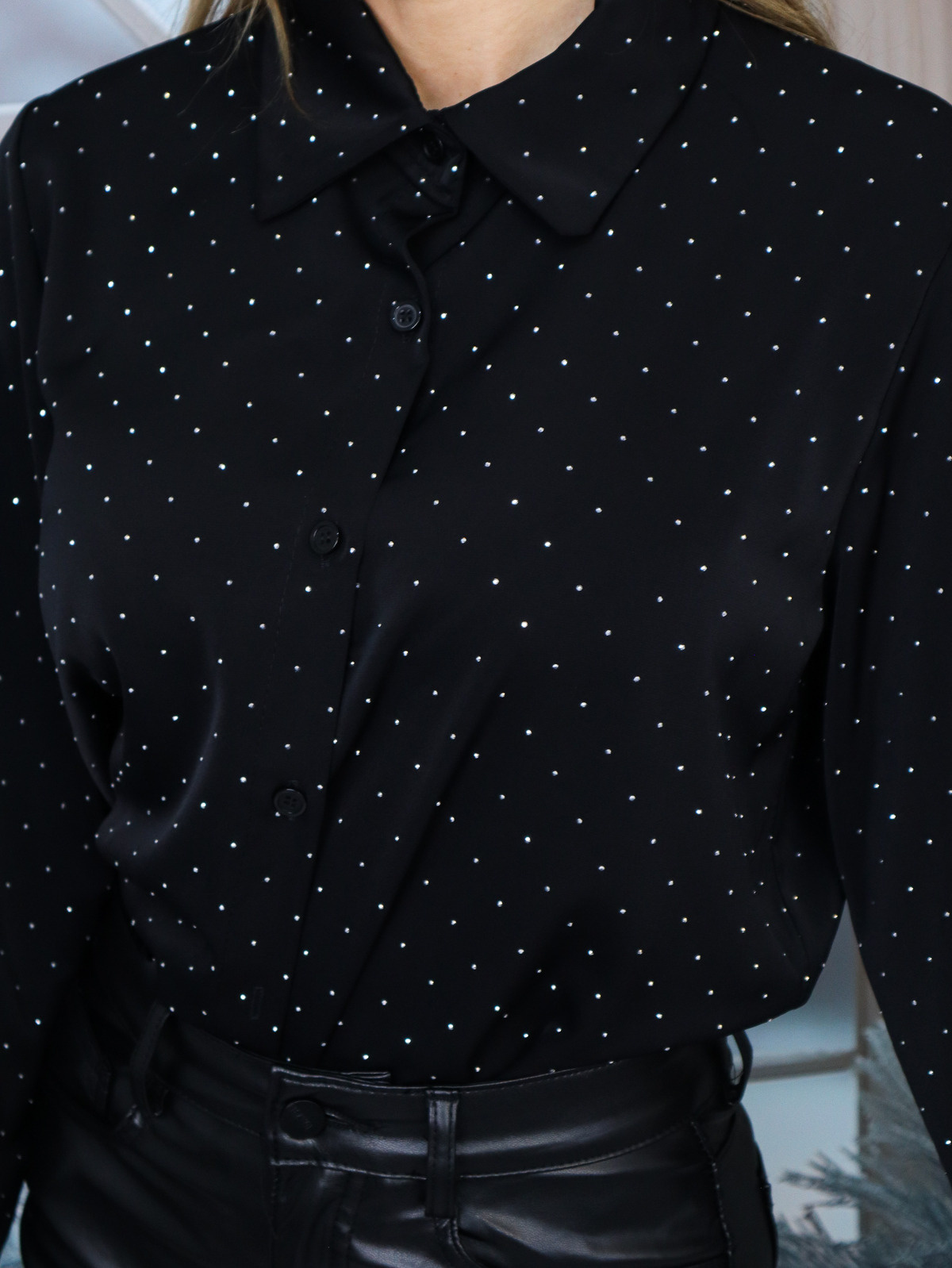 Wyposażona w długie rękawy i klasyczny kołnierzyk, kreuje sylwetkę z elegancką linii. Cyrkonie zdobiące guziki to wyjątkowa ozdoba, która przyciąga wzrok i dodaje blasku.