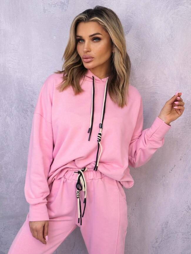 KOMPLET DRESOWY BLUZA Z KAPTUREM+ SPODNIE- RÓŻOWY