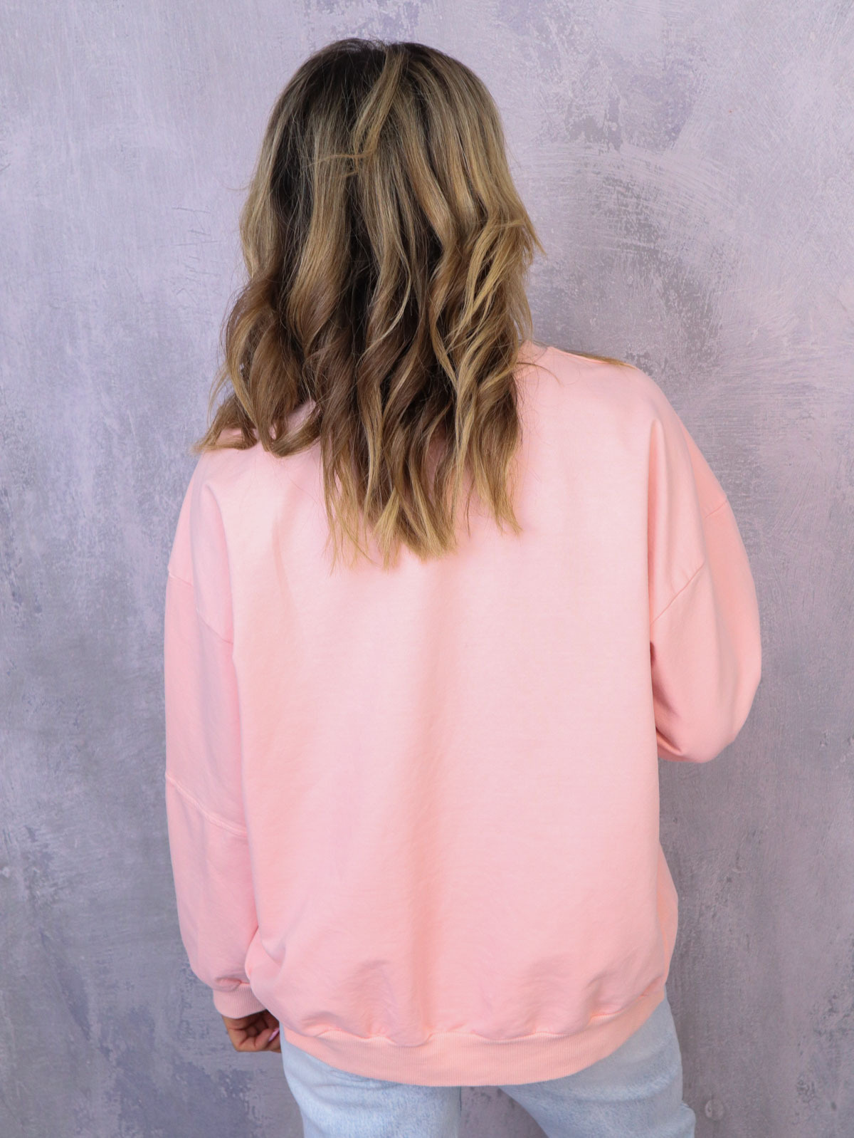 ASYMETRYCZNA BLUZA OVERSIZE Z PRZESZYCIAMI NA RĘKAWACH- JASNY ROŻ