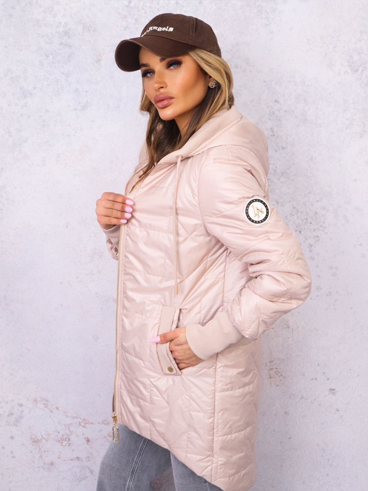 ASYMETRYCZNA PIKOWANA KURTKA Z KAPTUREM- BEŻOWA