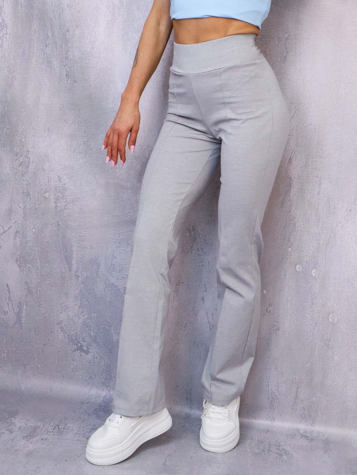 SPODNIE DZWONY FLARE Z PRZESZYCIEM- SZARE