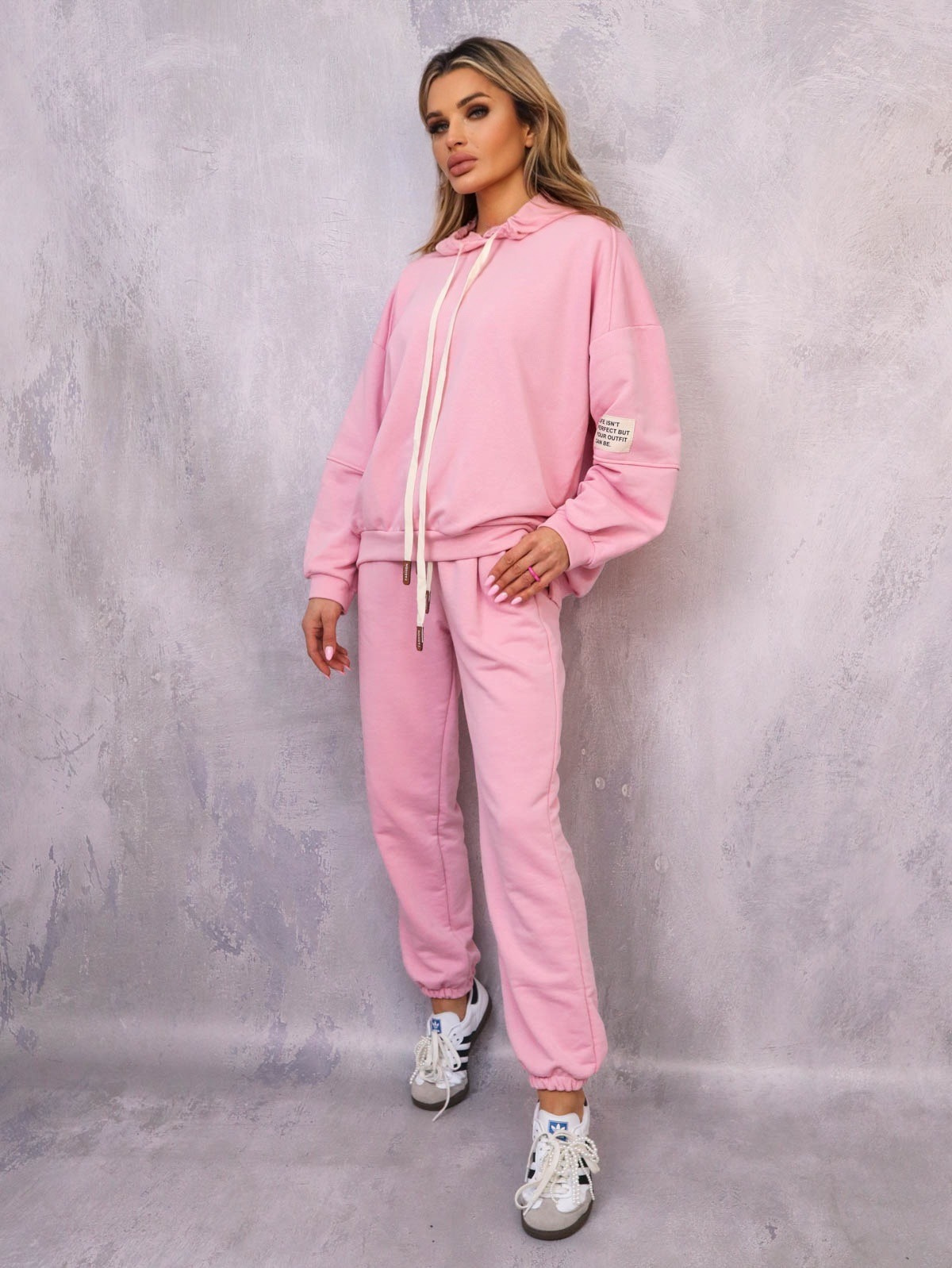 KOMPLET DRESOWY BLUZA Z KAPTUREM+ SPODNIE- RÓŻOWY