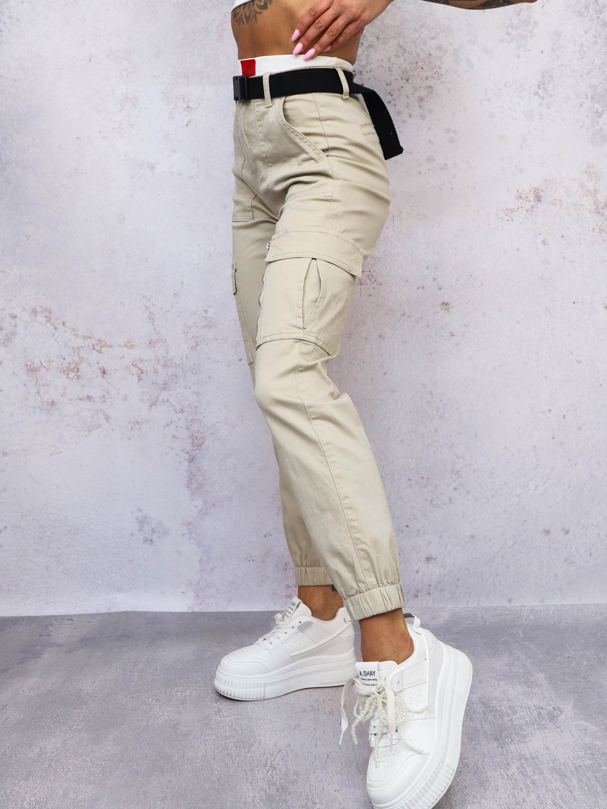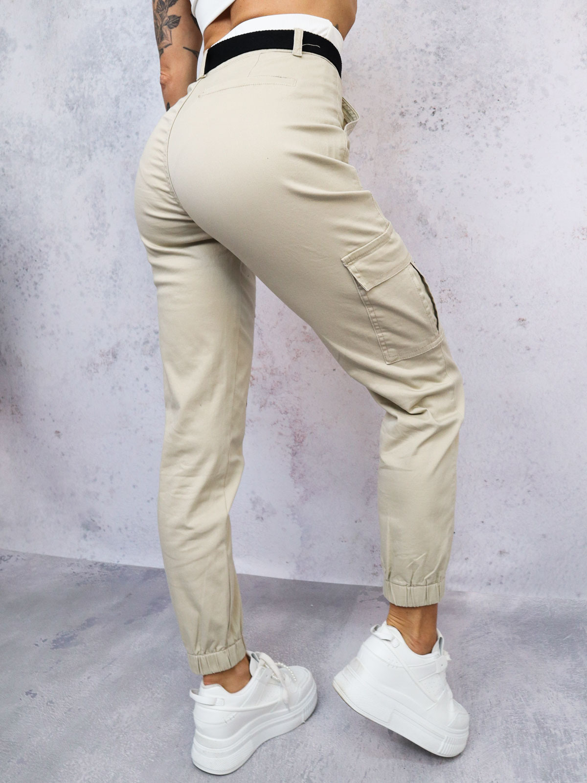 SPODNIE BOJÓWKI CARGO + PASEK- BEŻOWE