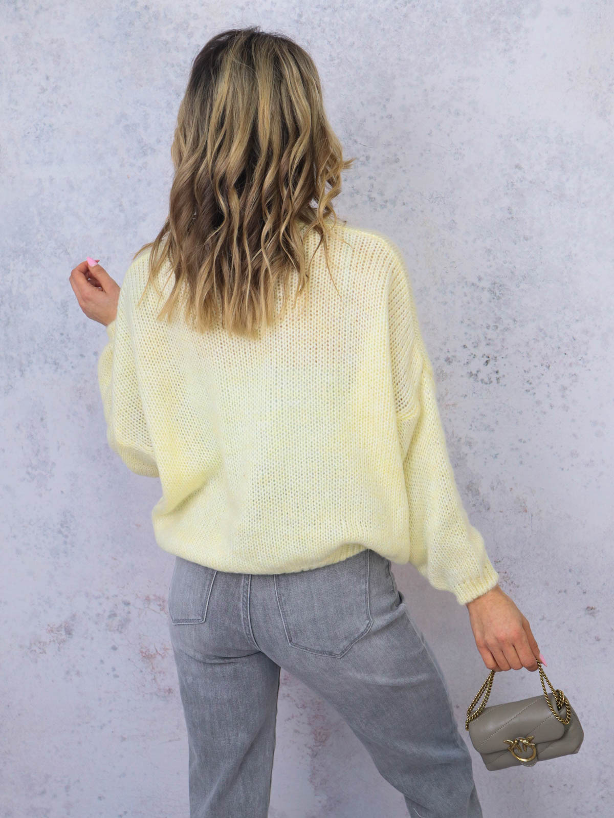 LUŹNY SWETER ZE ZŁOTYMI GUZIKAMI- ŻÓŁTY