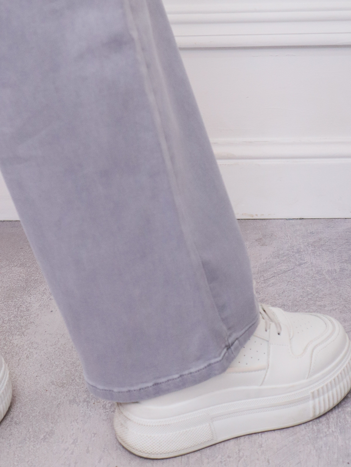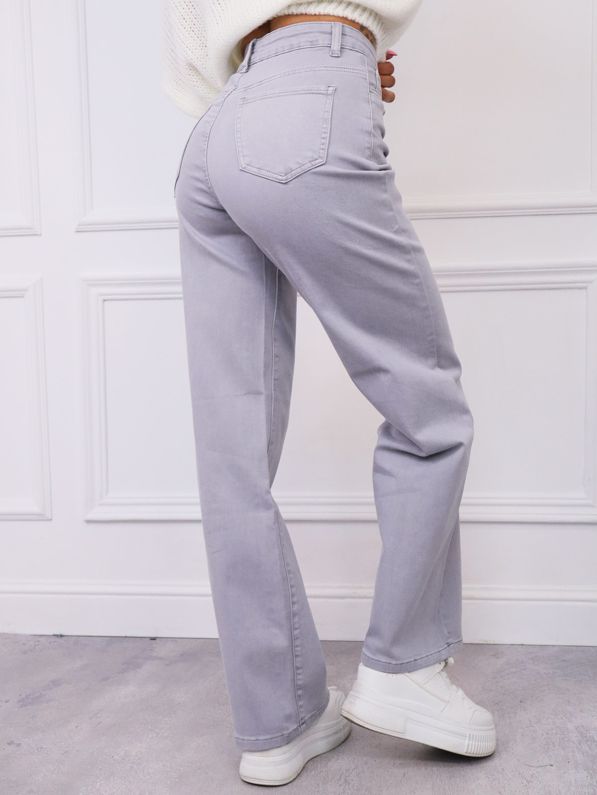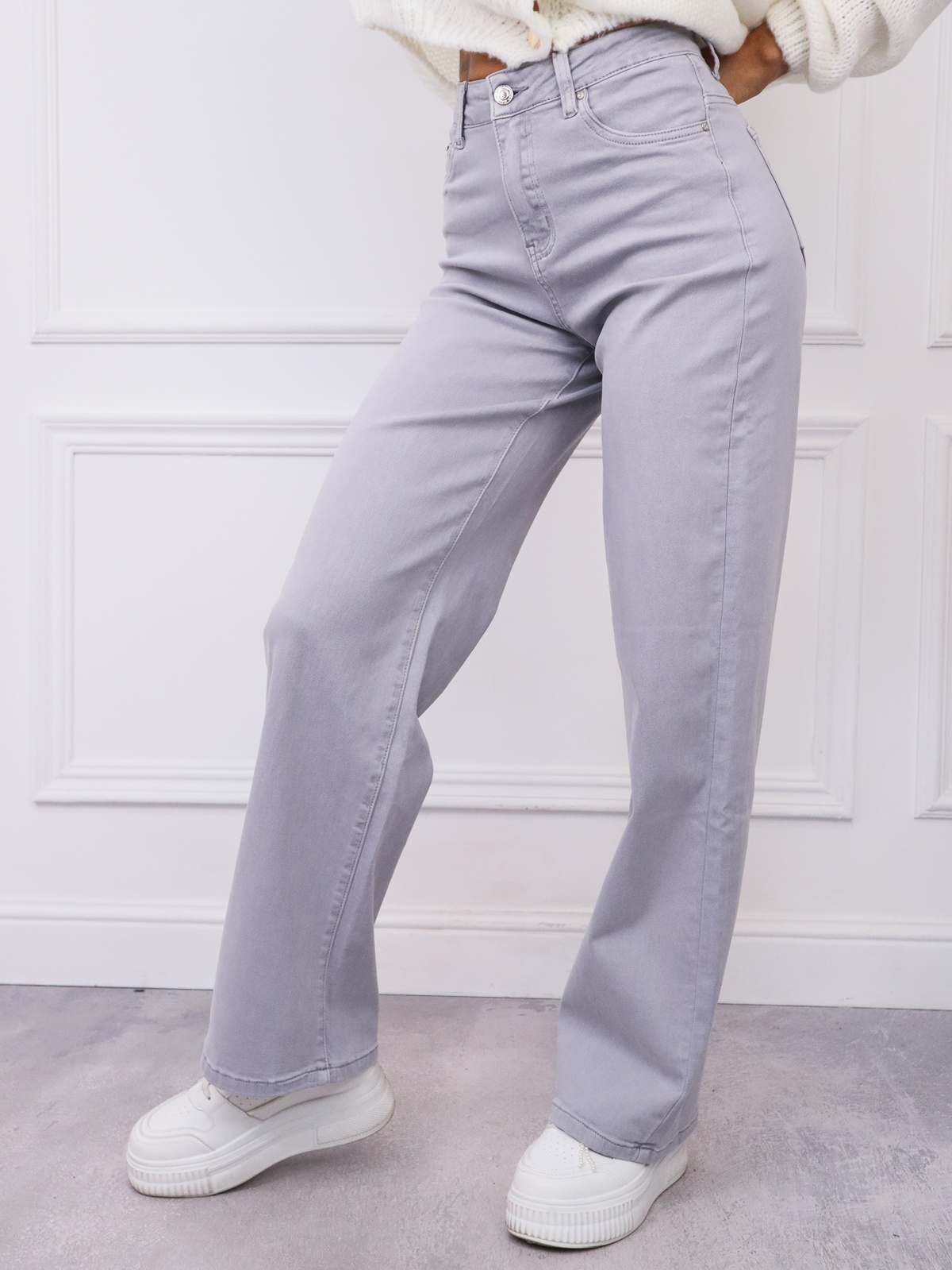 JASNOSZARE SPODNIE JEANSOWE Z SZEROKIMI NOGAWKAMI