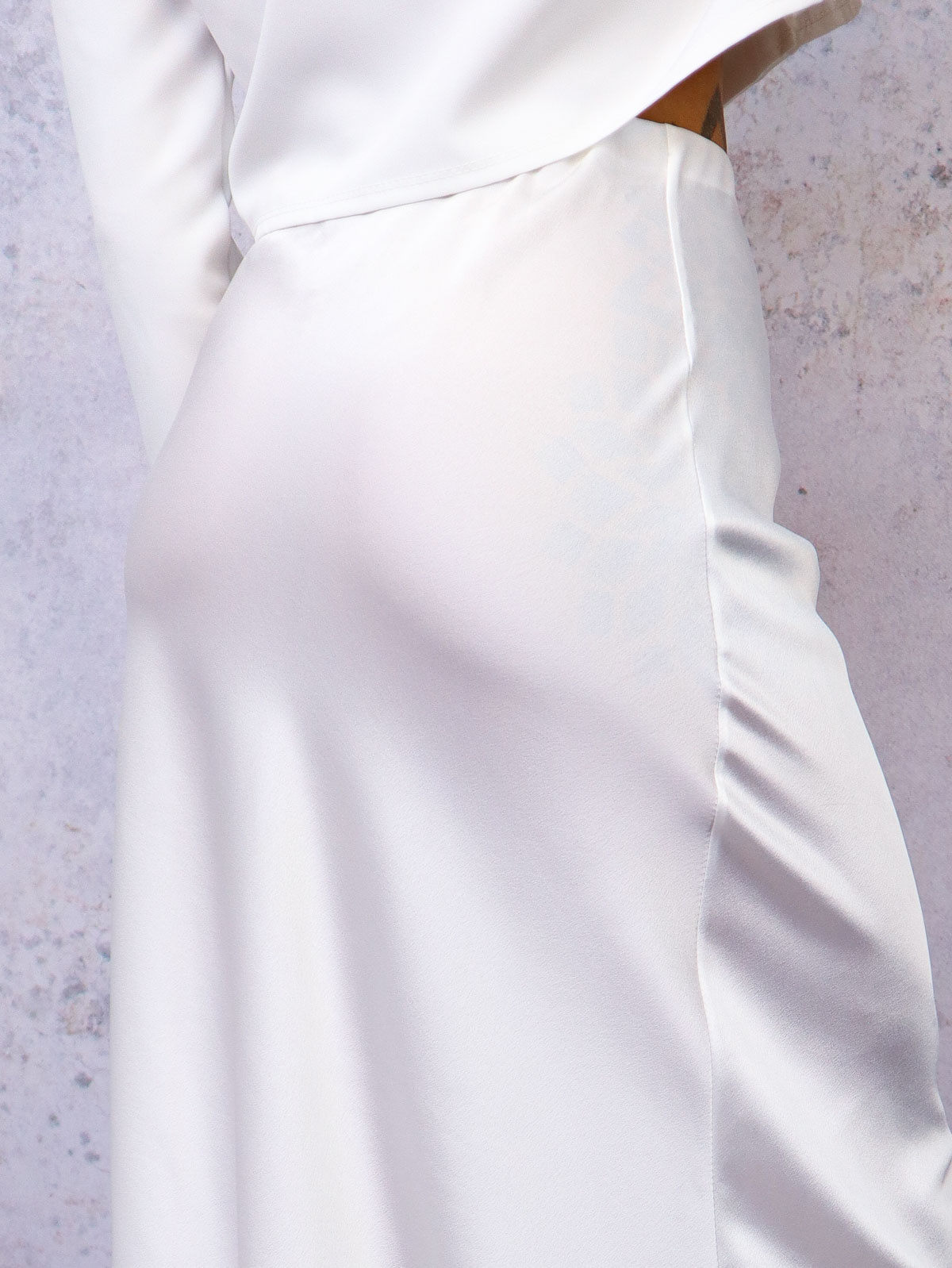 SATYNOWA SPÓDNICA Z GUMKĄ W PASIE - BIAŁA