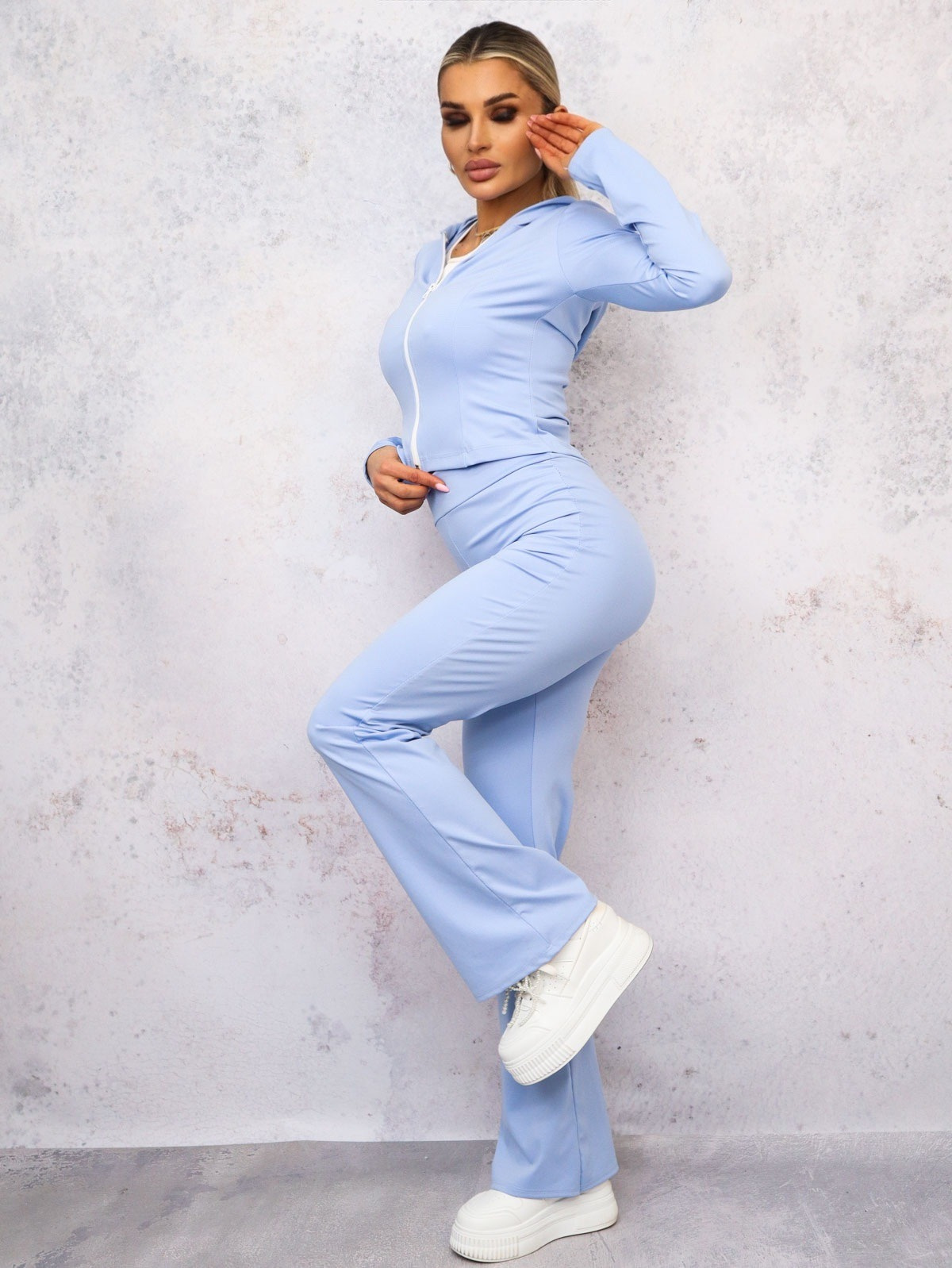 KOMPLET BLUZA ZAPINANA NA ZAMEK+ SPODNIE DZWONY- NIEBIESKI