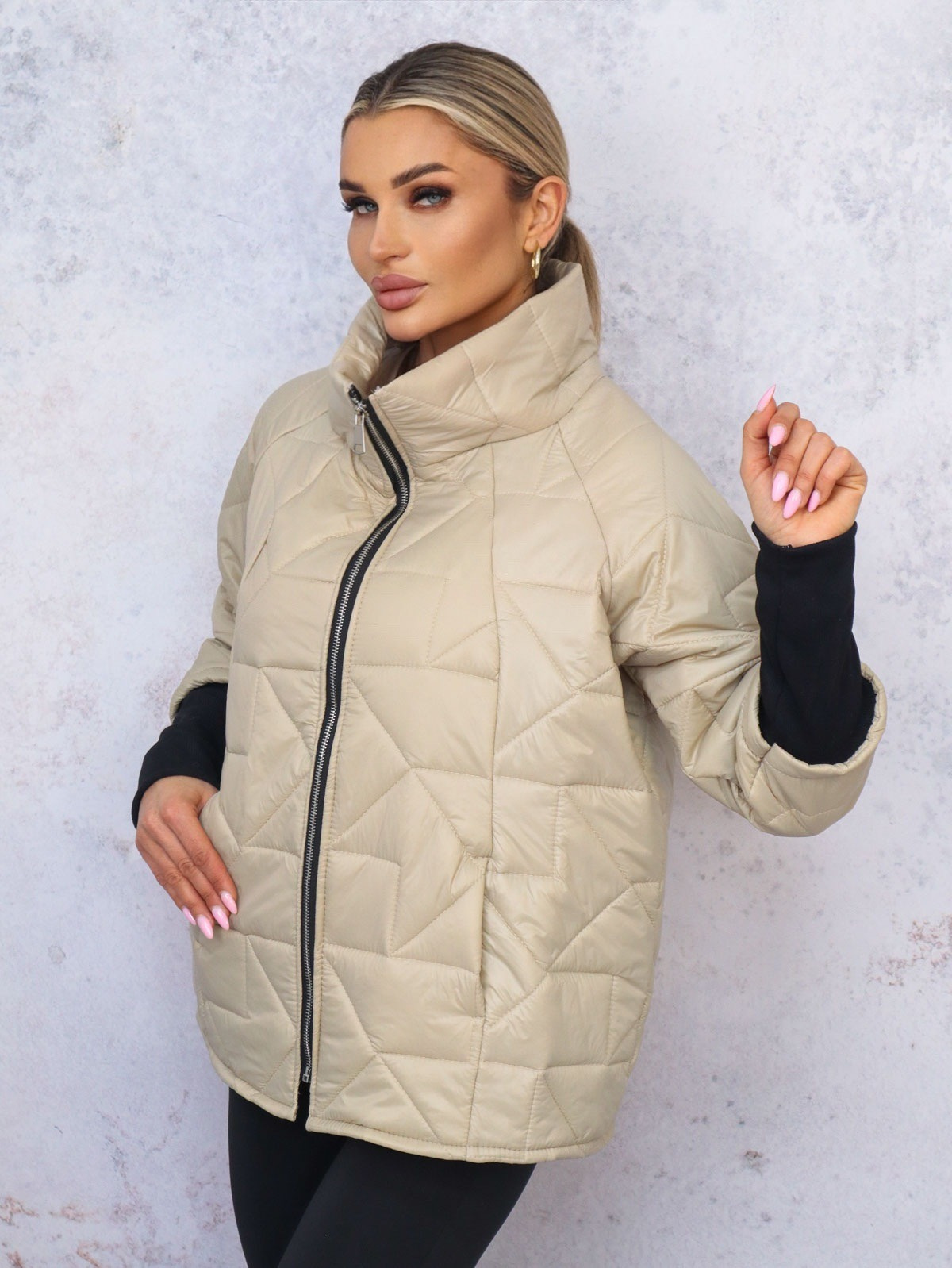 KURTKA PIKOWANA OVERSIZE- BEŻOWA
