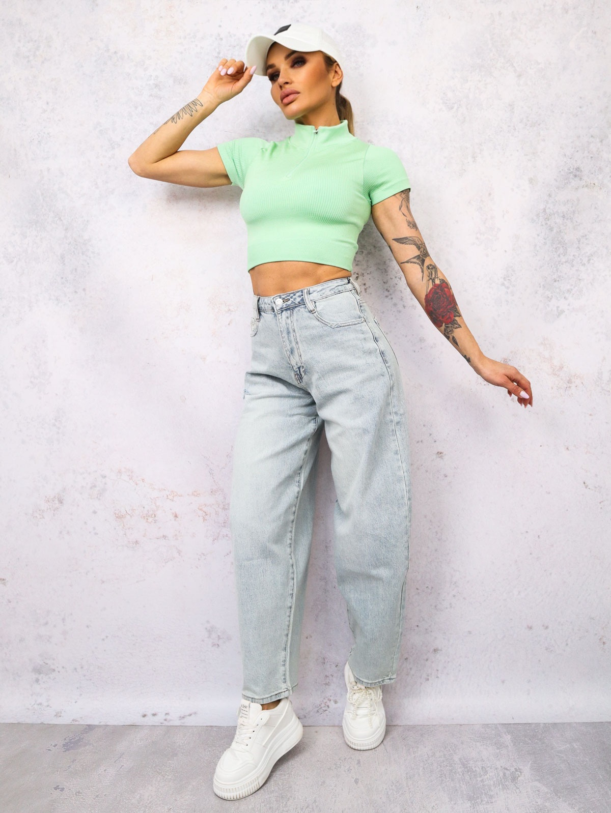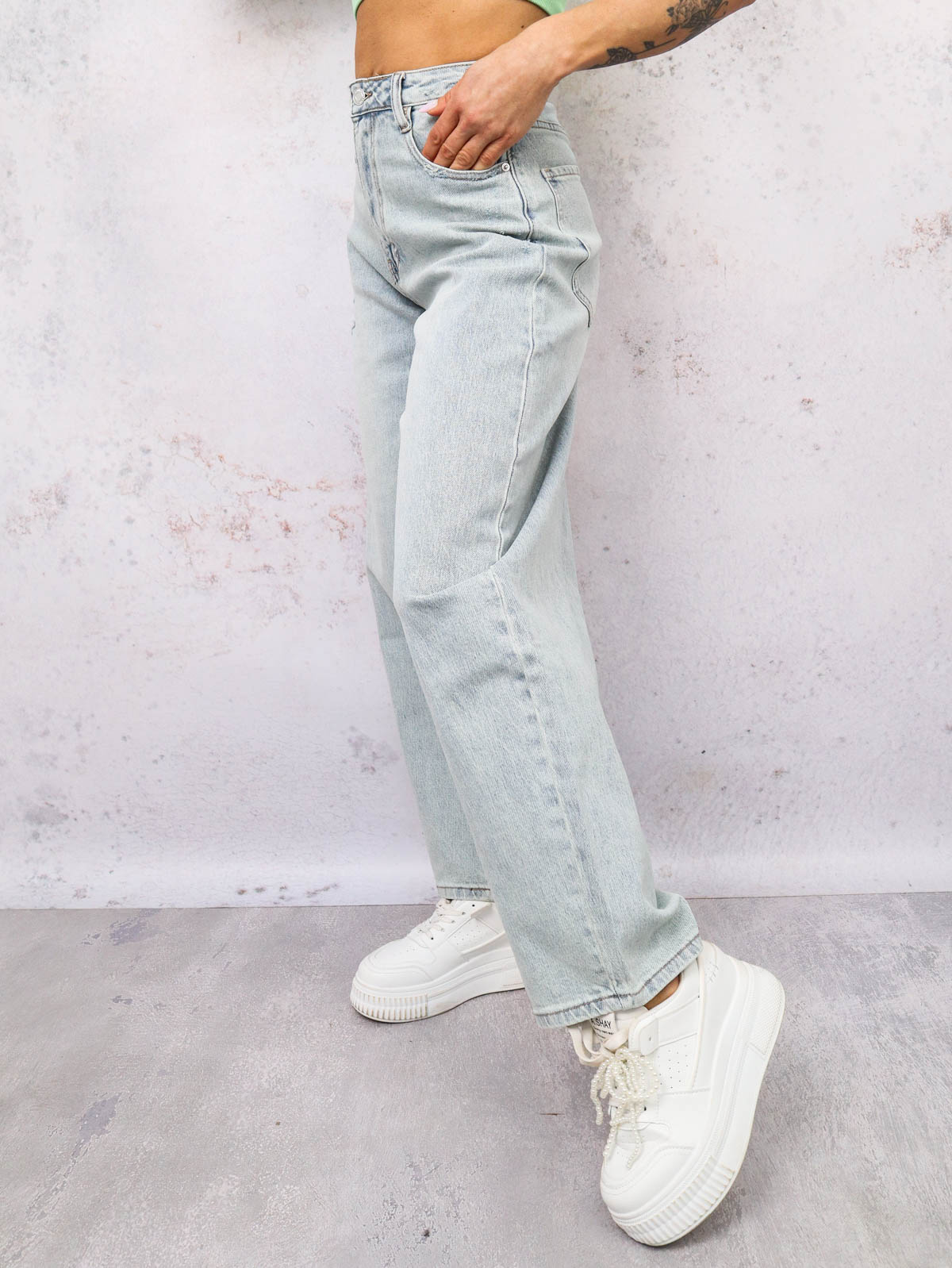 SPODNIE JEANSOWE BALLOON Z PRZETARCIAMI