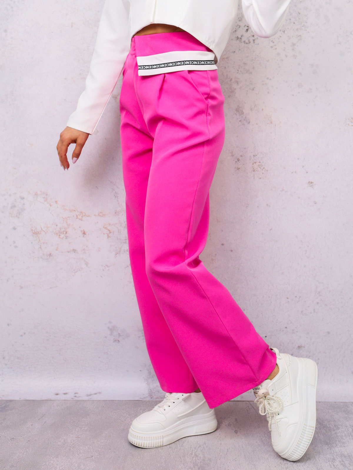 SPODNIE MATERIAŁOWE ELEGANCKIE Z MANKIETEM W PASIE- CIEMNY RÓŻ