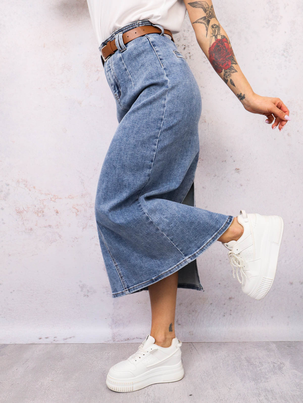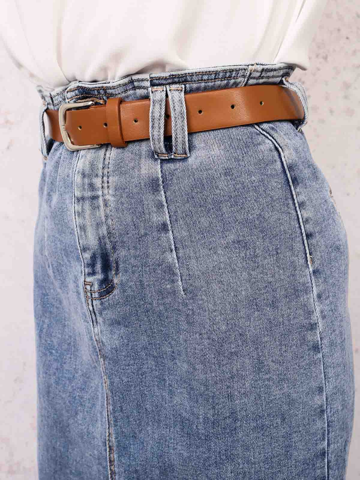 Spódnica jeansowa midi z rozporkiem z tyłu. Pasek gratis.