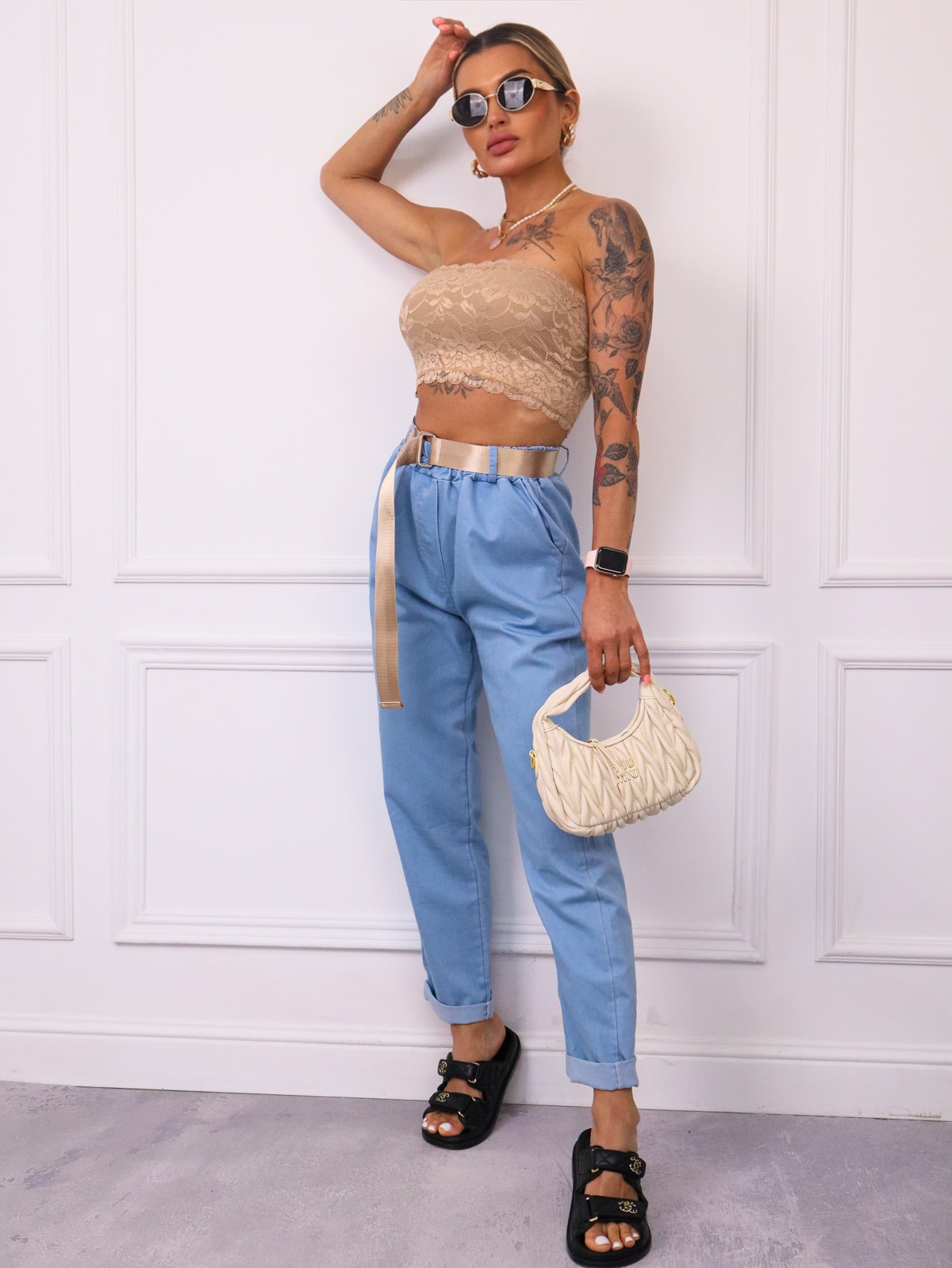 SPODNIE MATERIAŁOWE Z KIESZENIAMI+ PASEK- NIEBIESKIE