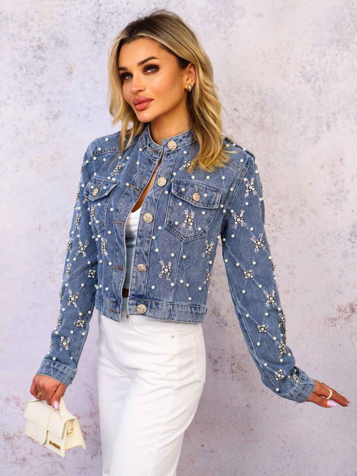 KURTKA JEANSOWA Z OZDOBNYMI PEREŁKAMI I CEKINAMI