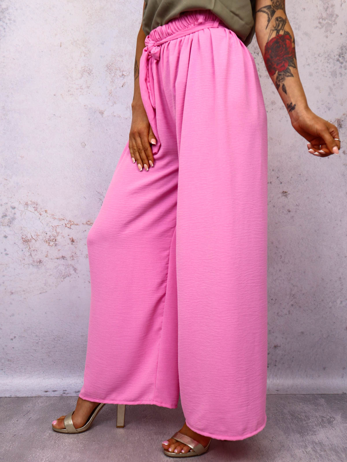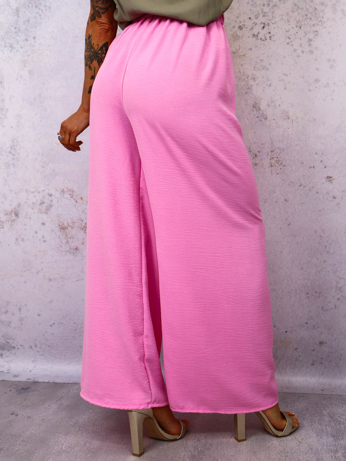 SPODNIE SZEROKIE Z GUMĄ I WIĄZANIEM W PASIE- JASNORÓŻOWE