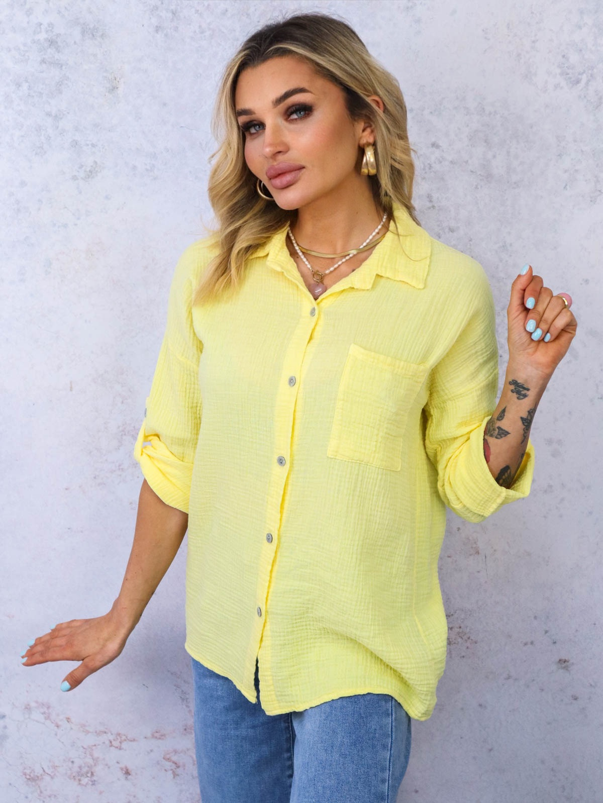 KOSZULA MUŚLINOWA Z KIESZENIĄ Z PRZODU- ŻÓŁTA