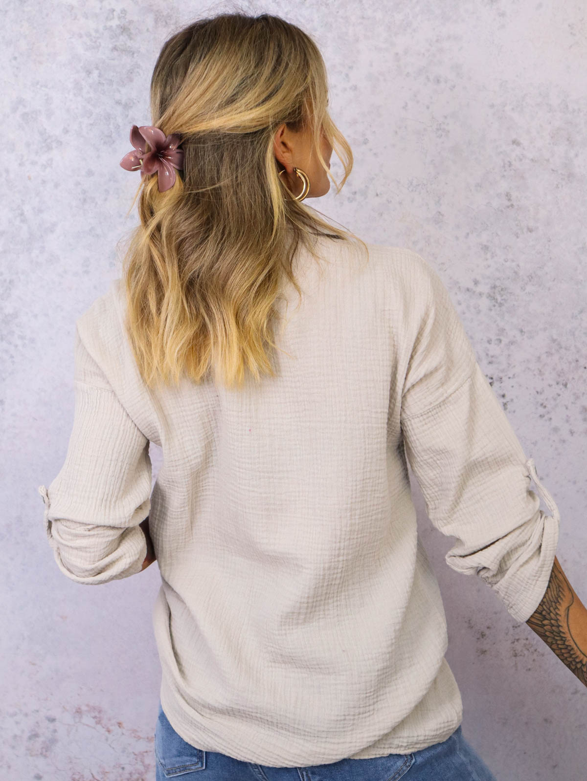 KOSZULA MUŚLINOWA Z KIESZENIĄ Z PRZODU- BEŻOWA