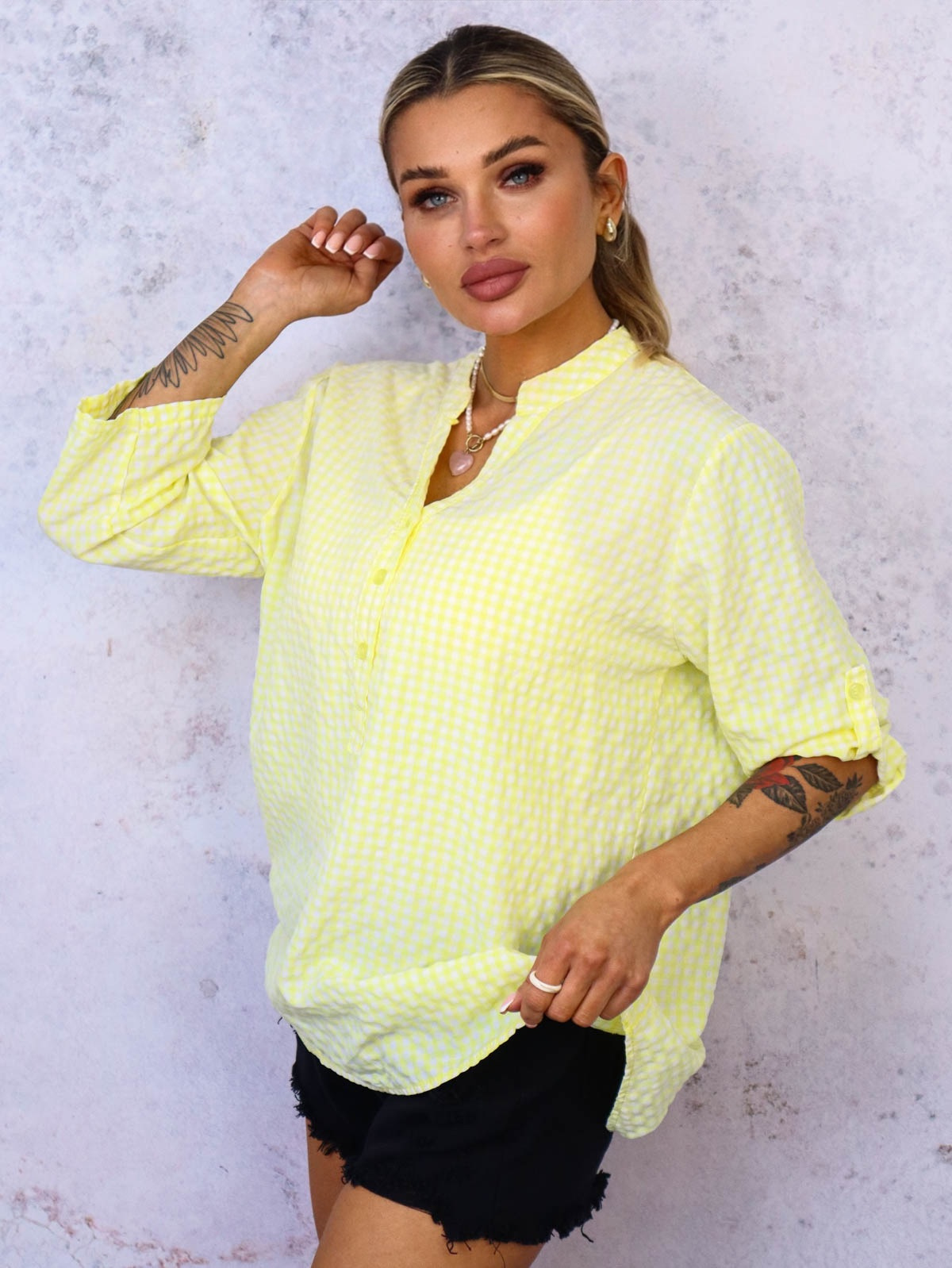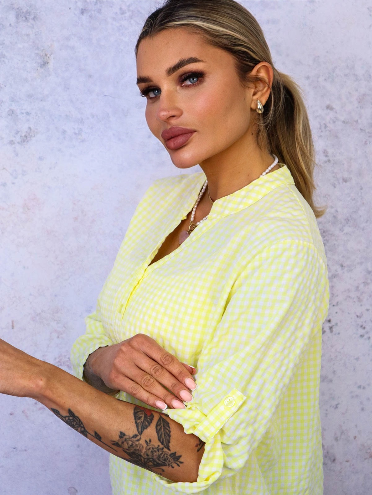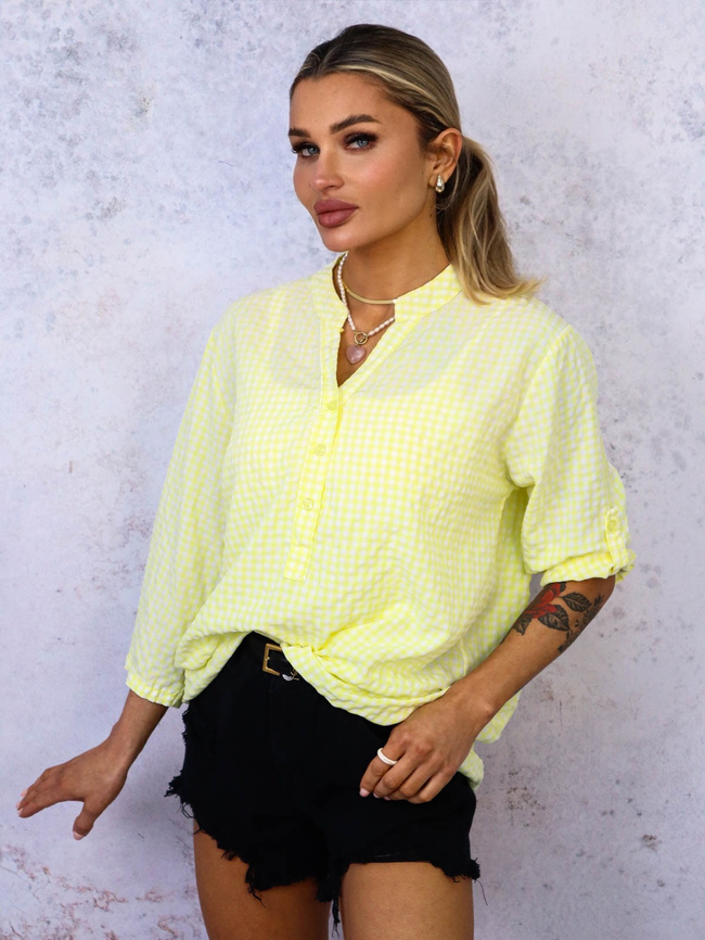 BLUZKA KOSZULOWA W KRATKĘ- ŻÓŁTA