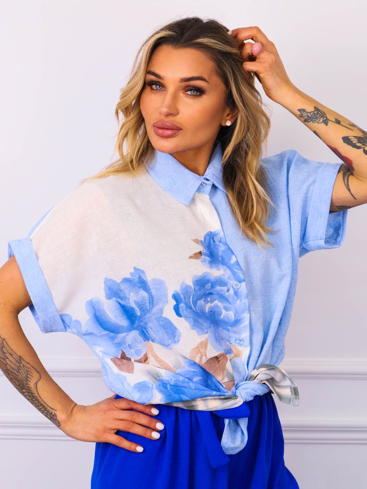 KOSZULA OVERSIZE Z KWIECISTYM NADRUKIEM- NIEBIESKA