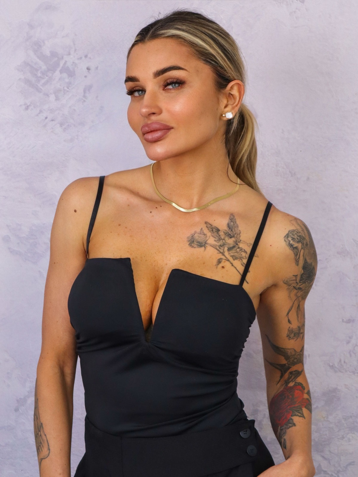 USZTYWNIANY TOP NA RAMIĄCZKACH- CZARNY